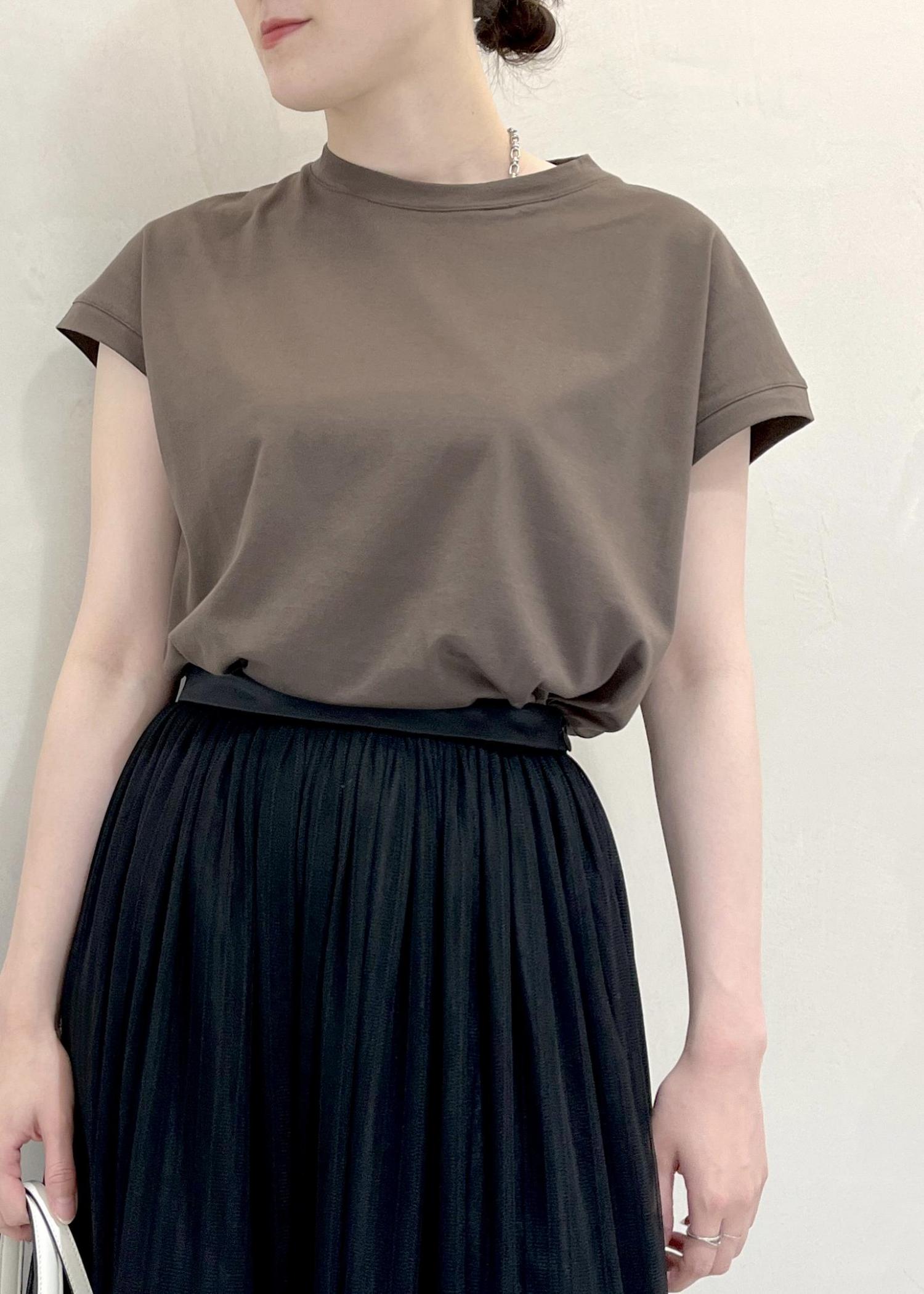 シンプルなカットソーを合わせて、シックながらリラックス感を感じるコーディネートにしました♡