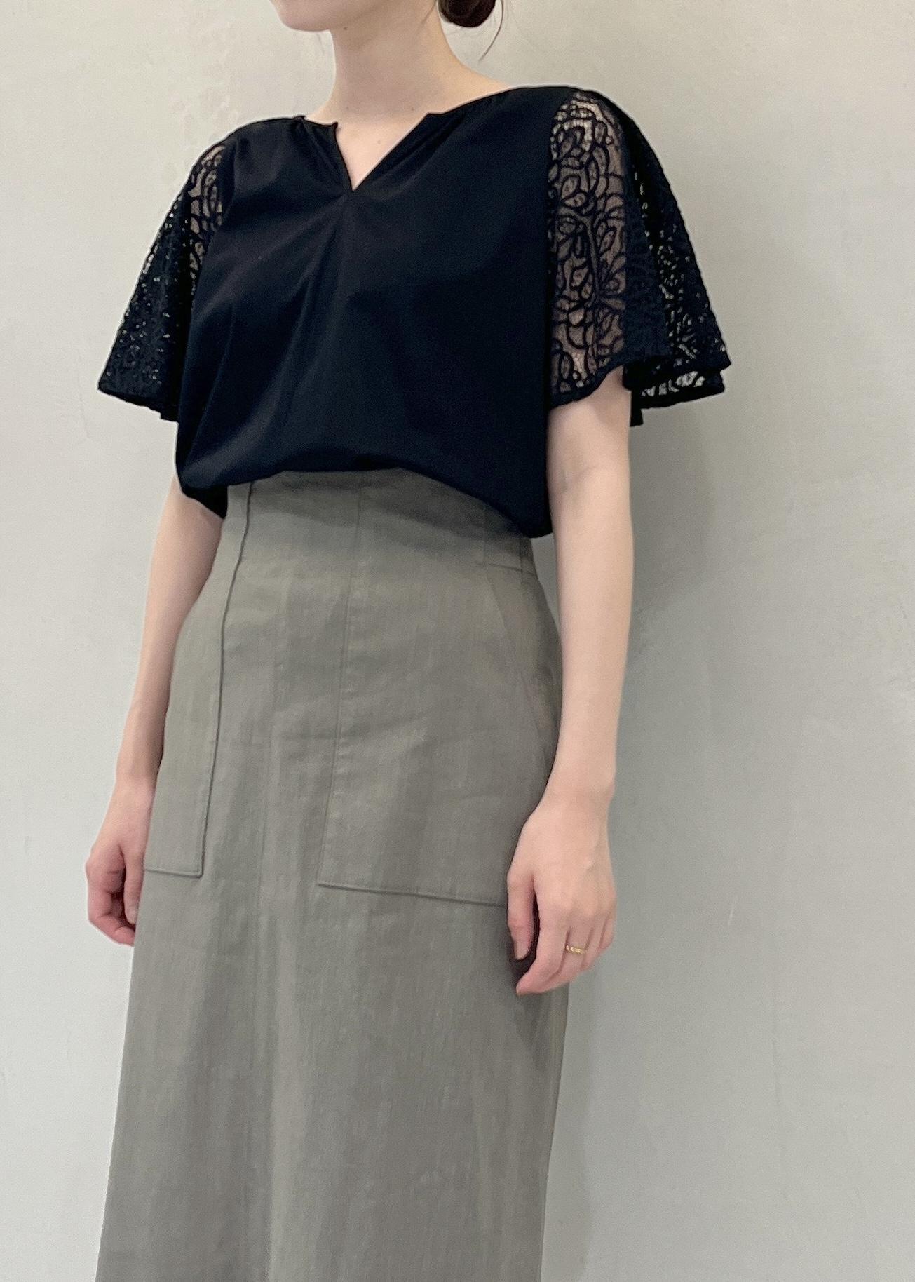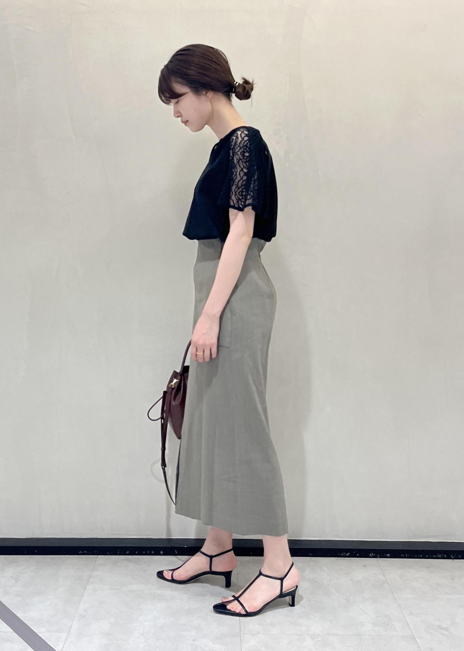 ロペ定番のスカートを合わせた綺麗目スタイル。