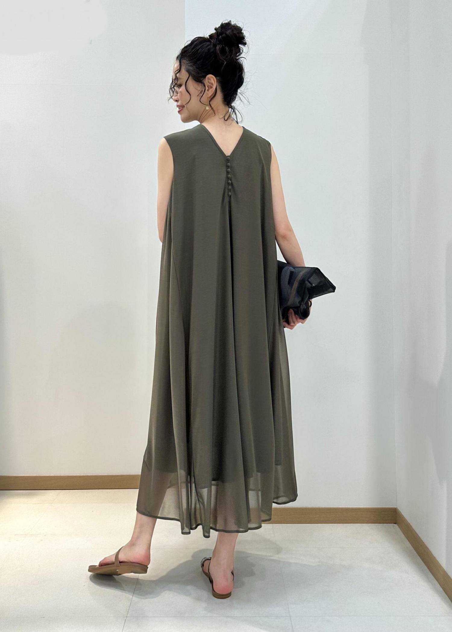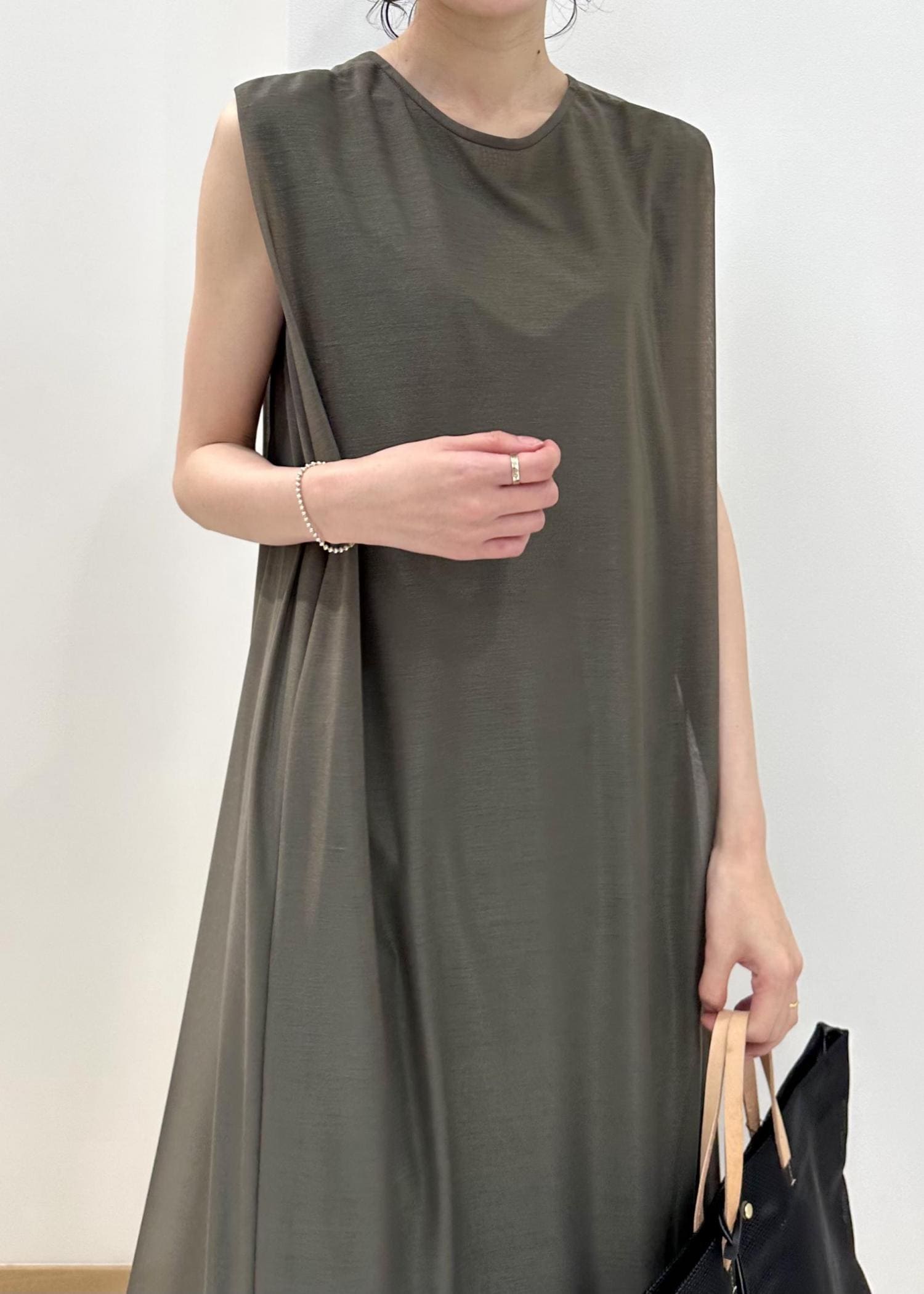 新色のエスパンディワンピースをさらりとシンプルにコーディネート。