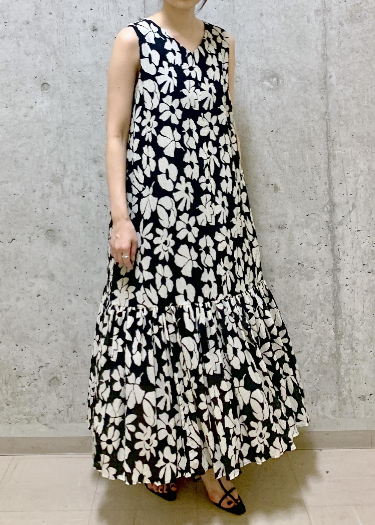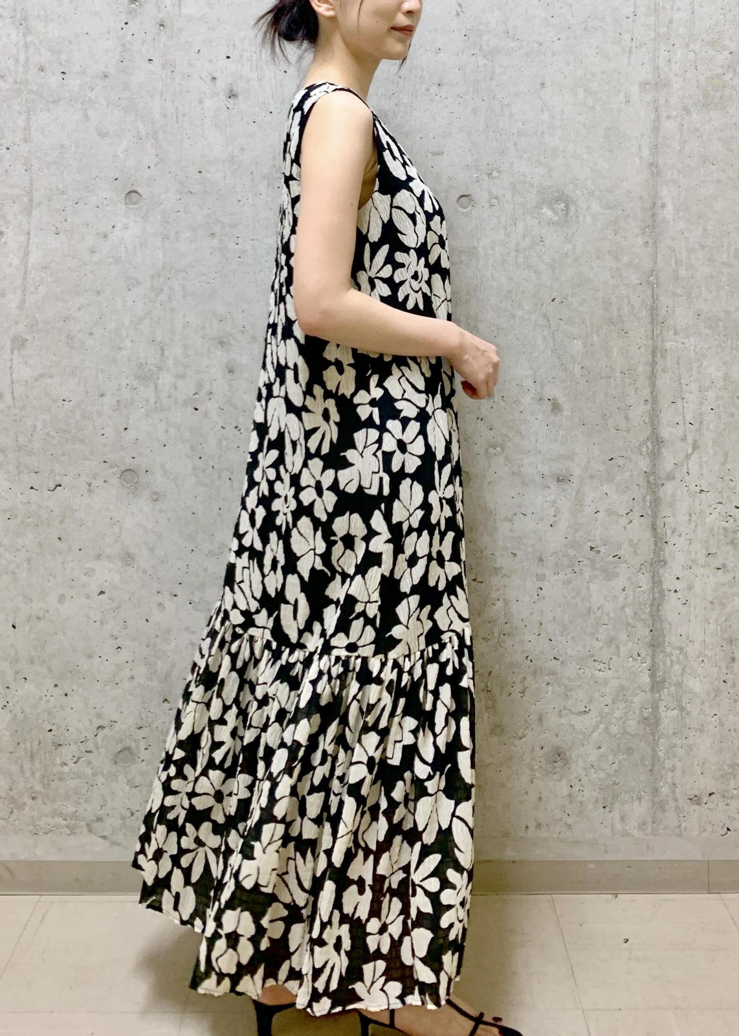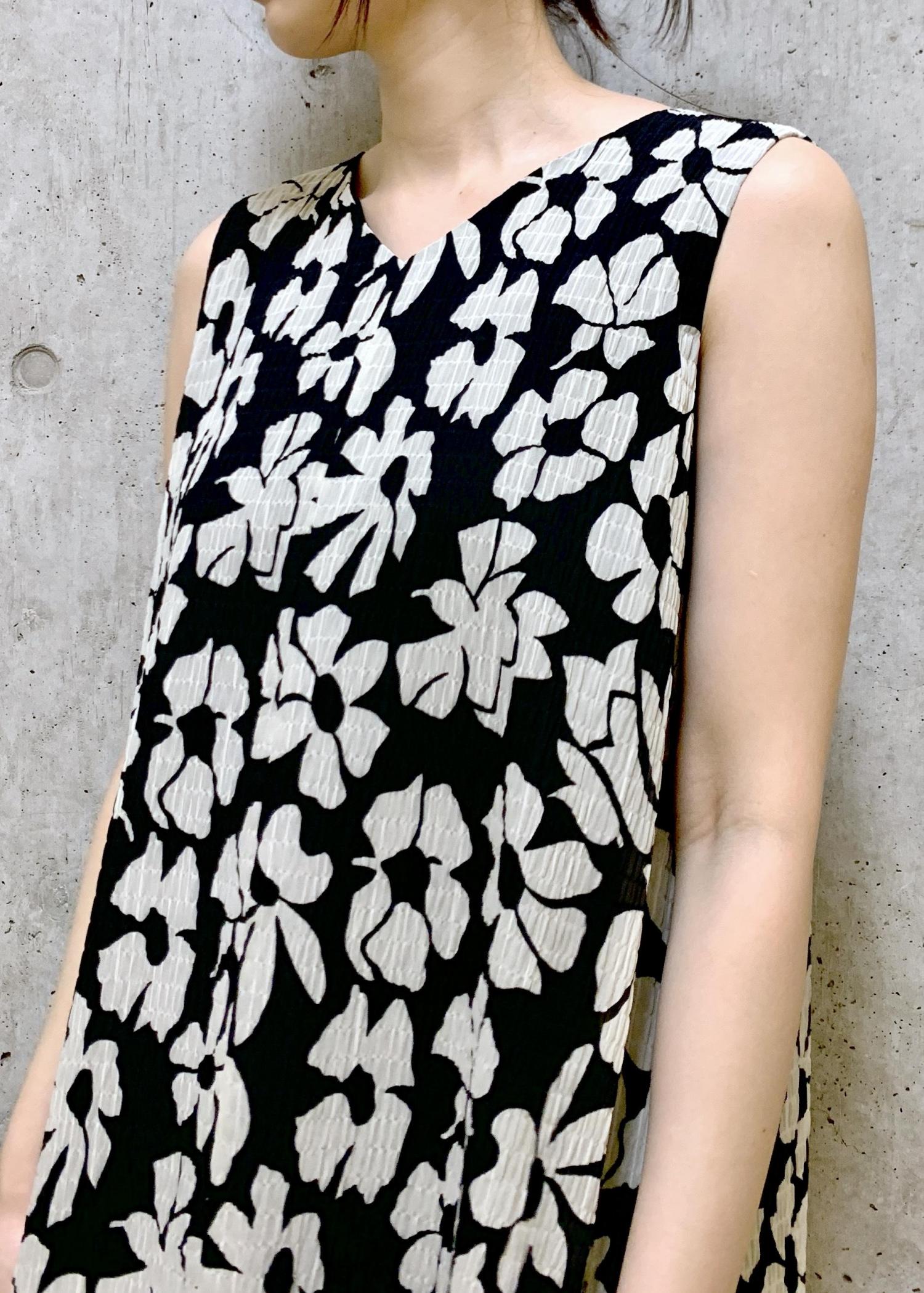 少し抽象的なモノトーンの花柄が、大人っぽい印象。