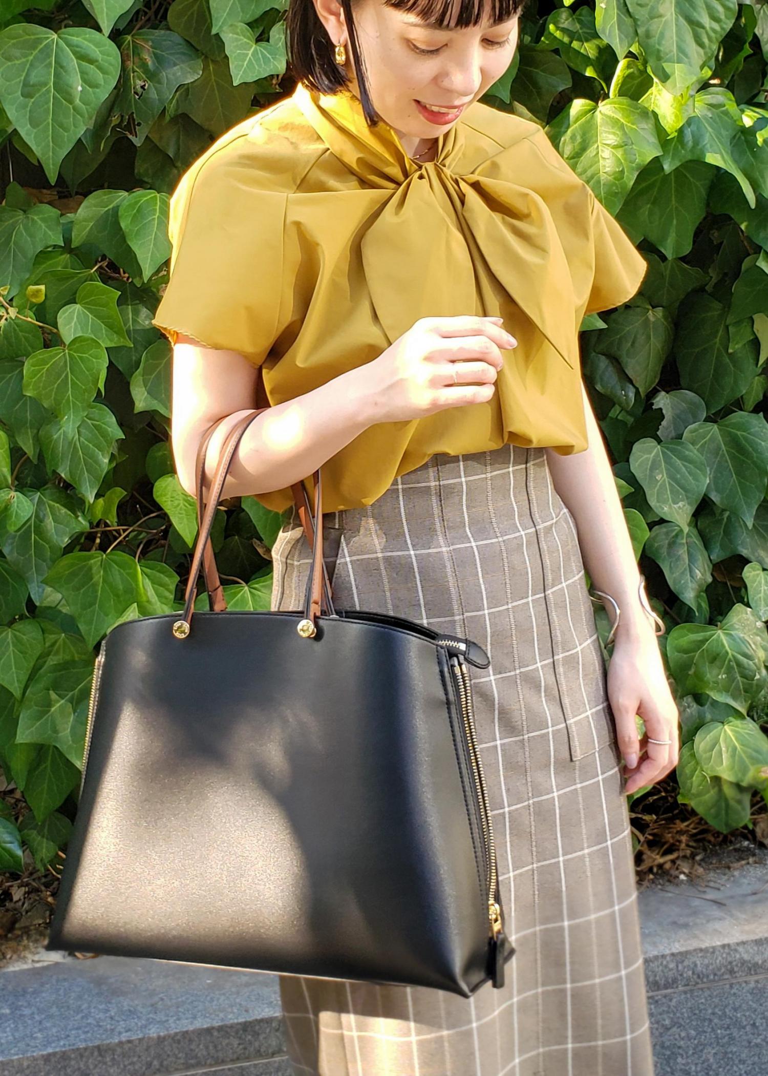 残暑が残る時期でも、半袖のゆったりとしたブラウスなら涼しさと秋らしさを両立してくれます。