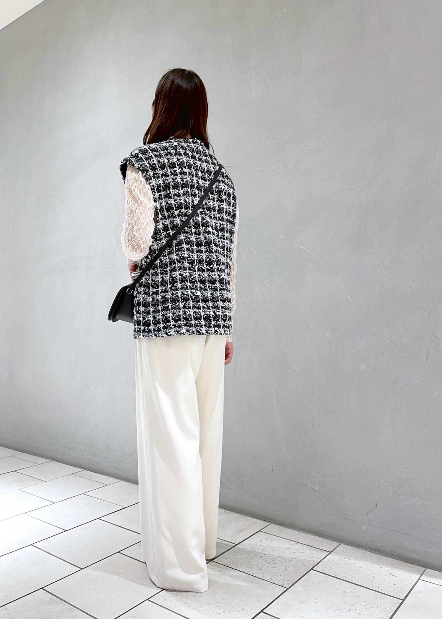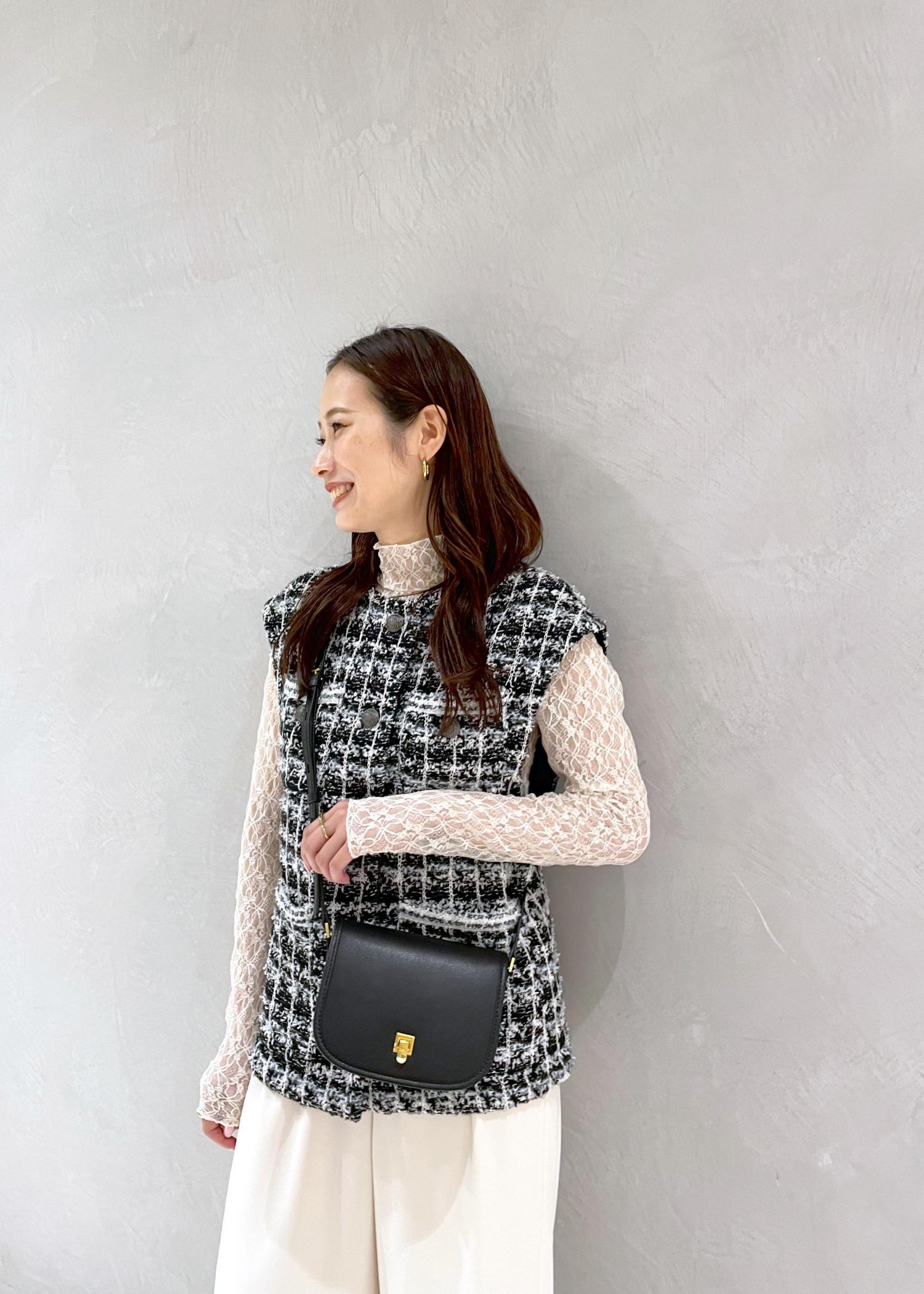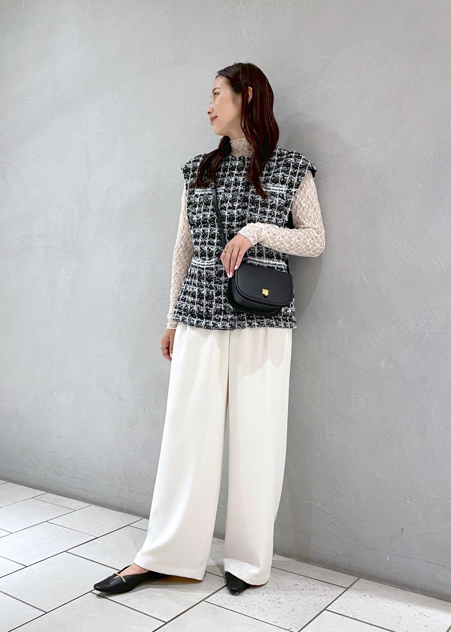 ポンチョとしても着ることができるツイードベストは秋にぴったり。 シアー感のあるブラウスを合わせれば暑さが残る時期でも秋らしさをプラスすることができます♩ ※トップスはこれから入荷予定のアイテムです。 ※店頭及び屋外での撮影画像は、光の当たり具合で色味が異なって見える場合がございます。商品の色味はスタジオ撮影の画像をご参照下さい。 Instagramはじめました! お気軽にフォローしてくれると嬉しいです☆ @yui_rope LINEでロペスタッフに相談は【友だち追加】をタップをして下さい