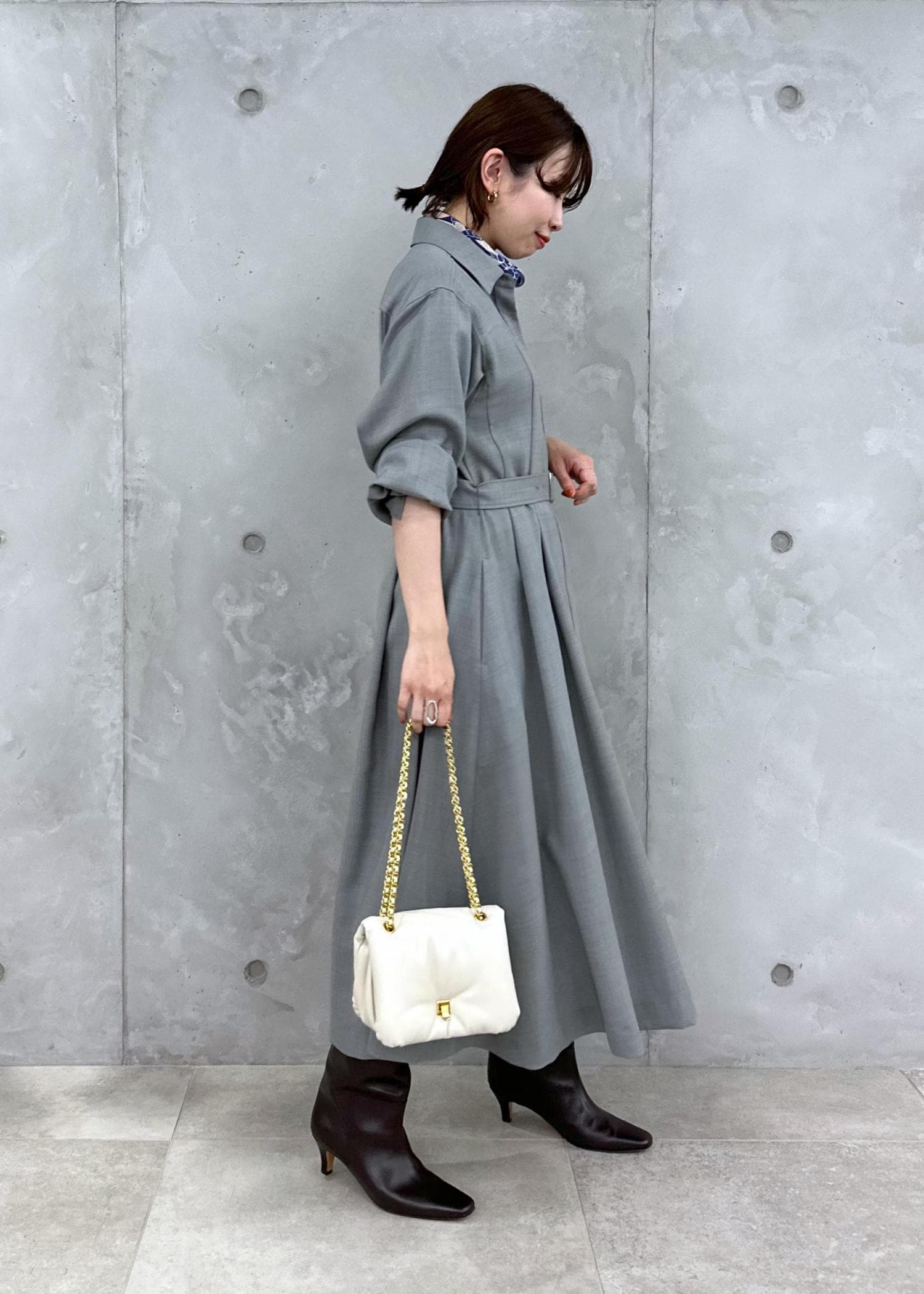 ウールビエラウエストタックシャツワンピース