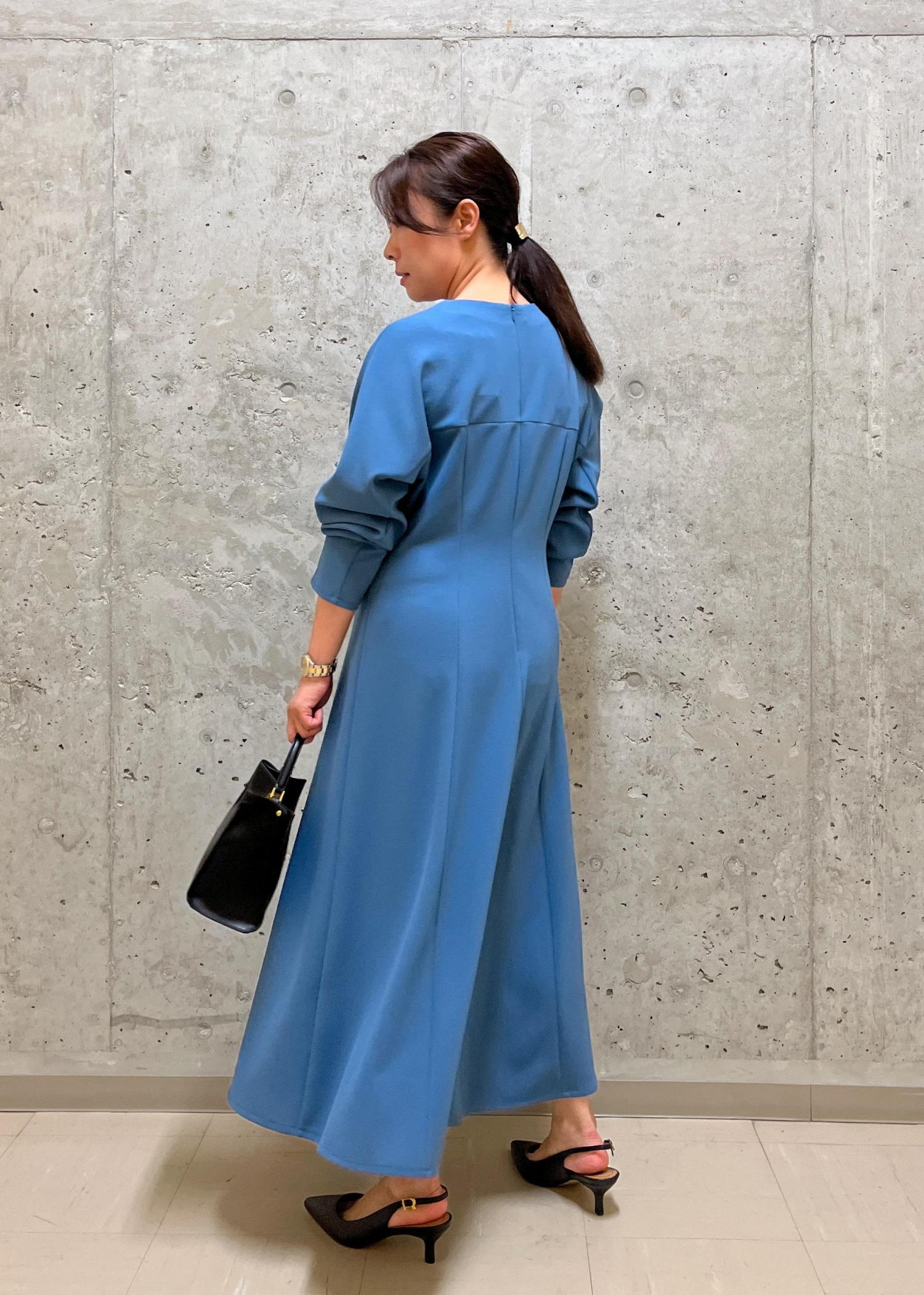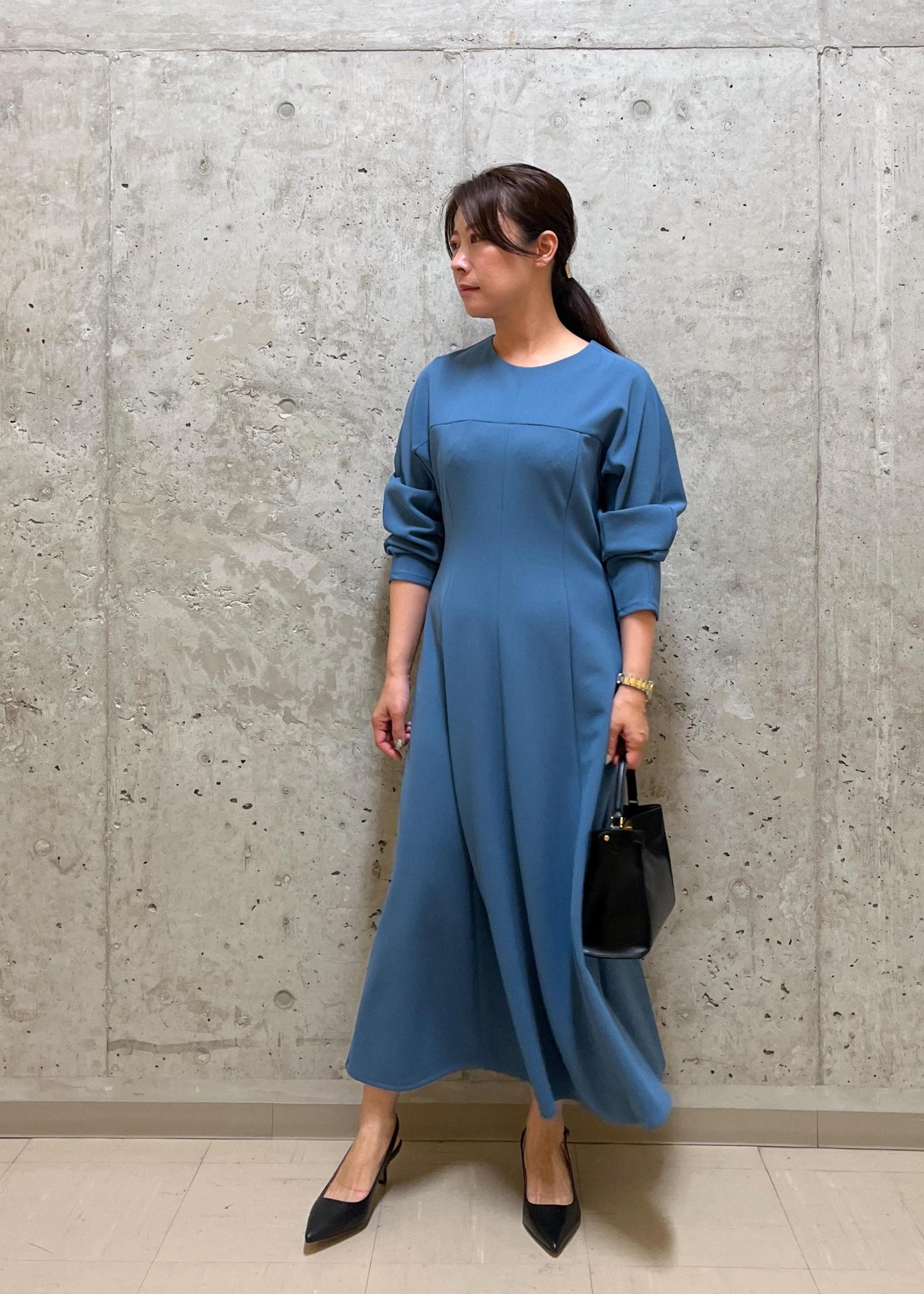 シルエットがキレイなワンピースはシンプルに1枚で着用しました。