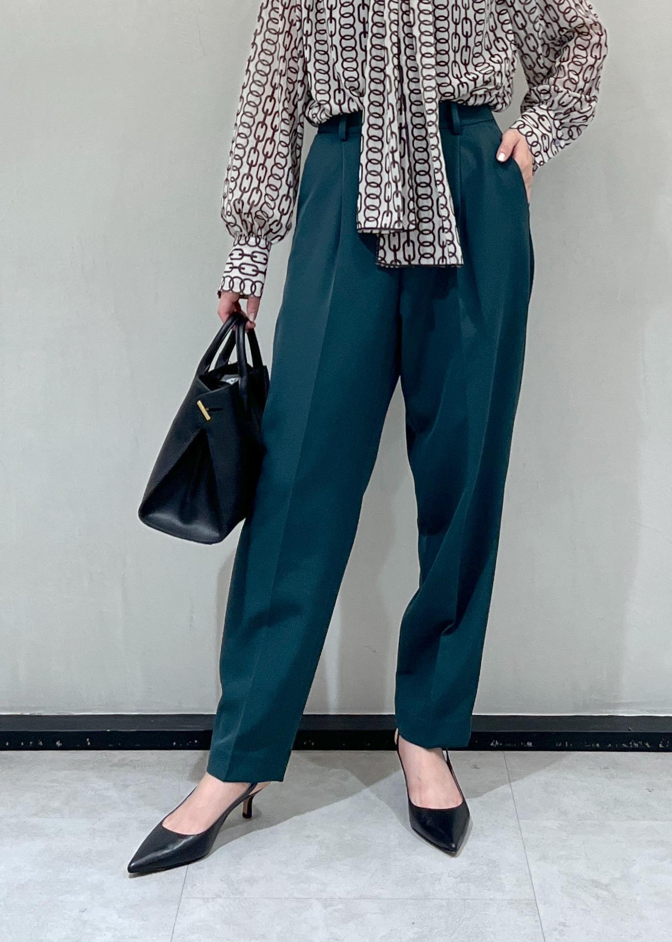 アウトレットROPÉ【高評価】ダブルクロステーパードパンツグリーン / 36¥9,900レビュードライタッチのポリエステルダブルクロス素材。