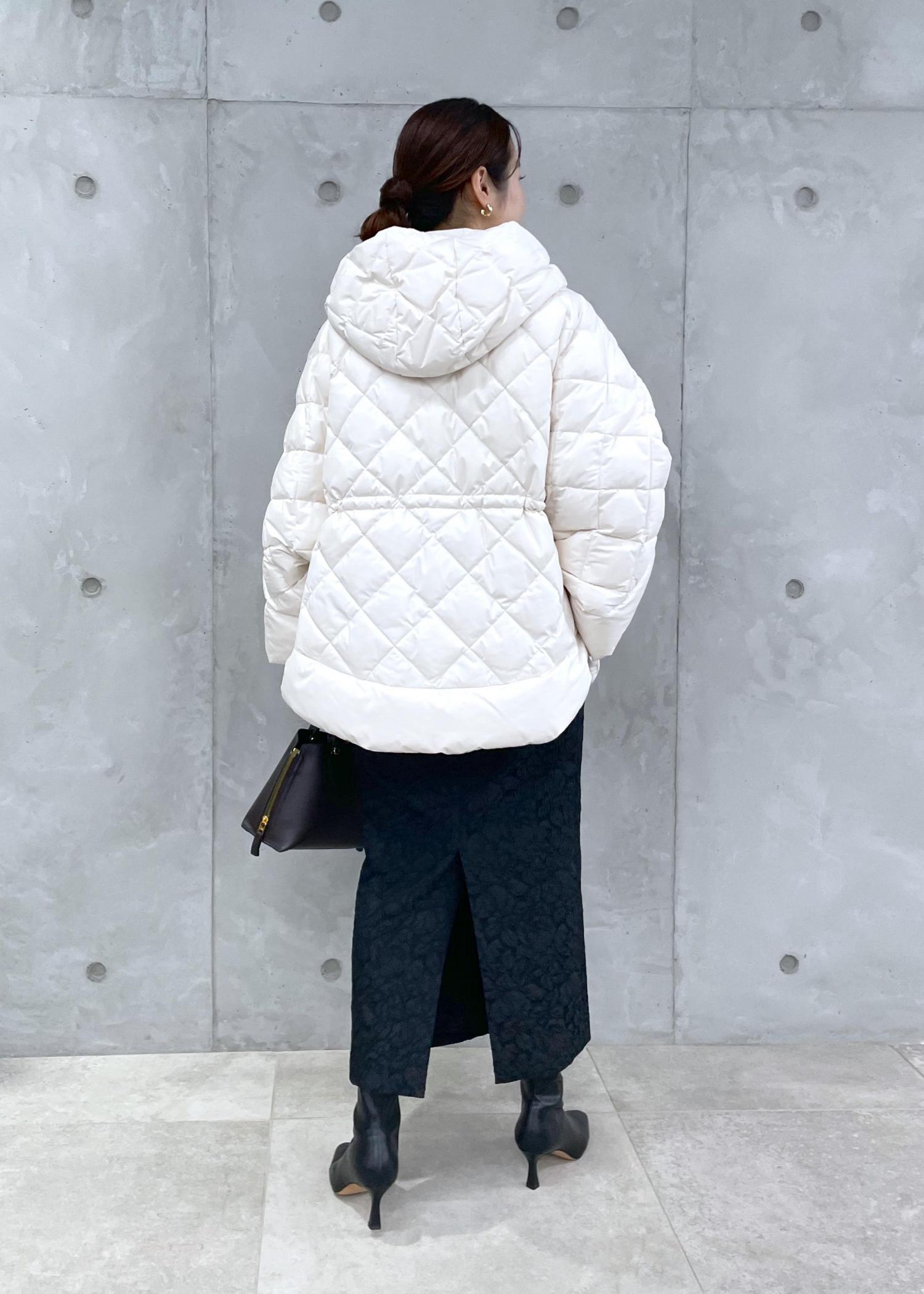 ROPÉ【TAION×LIMONTA】ポンチョ キルティング フーデッドダウンコートオフホワイト / F¥53,900レビュー161cmサンプルのフリーサイズを着用。