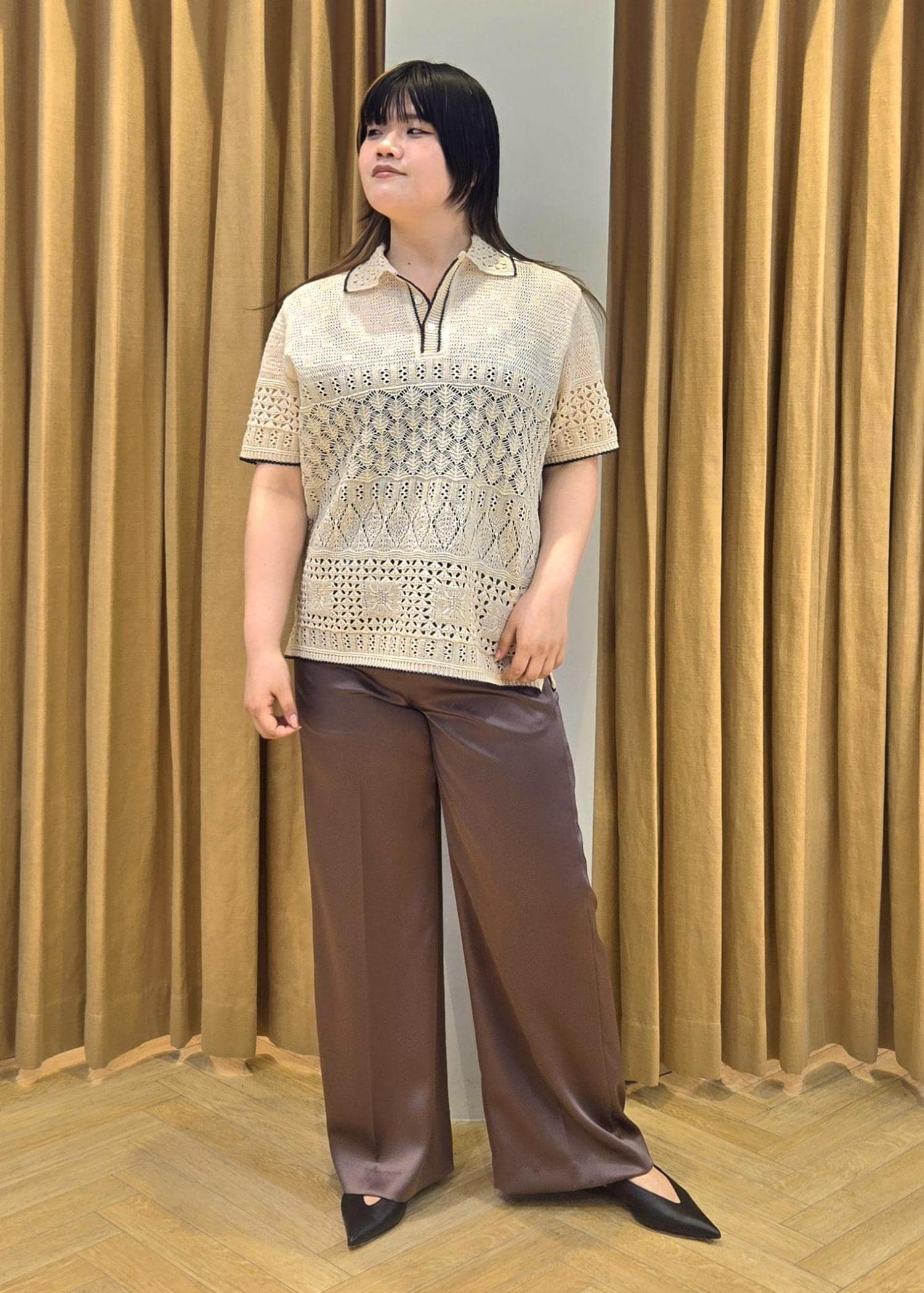 ロングスカートに合わせたり、デニムも合わせもシンプルながらにも華やかさが出るのでおすすめです。