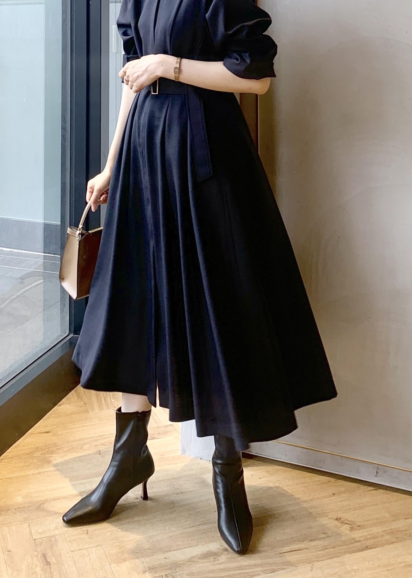 贅沢な分量感のあるフレアラインで、とにかくシルエットが美しく一枚でさまになります!