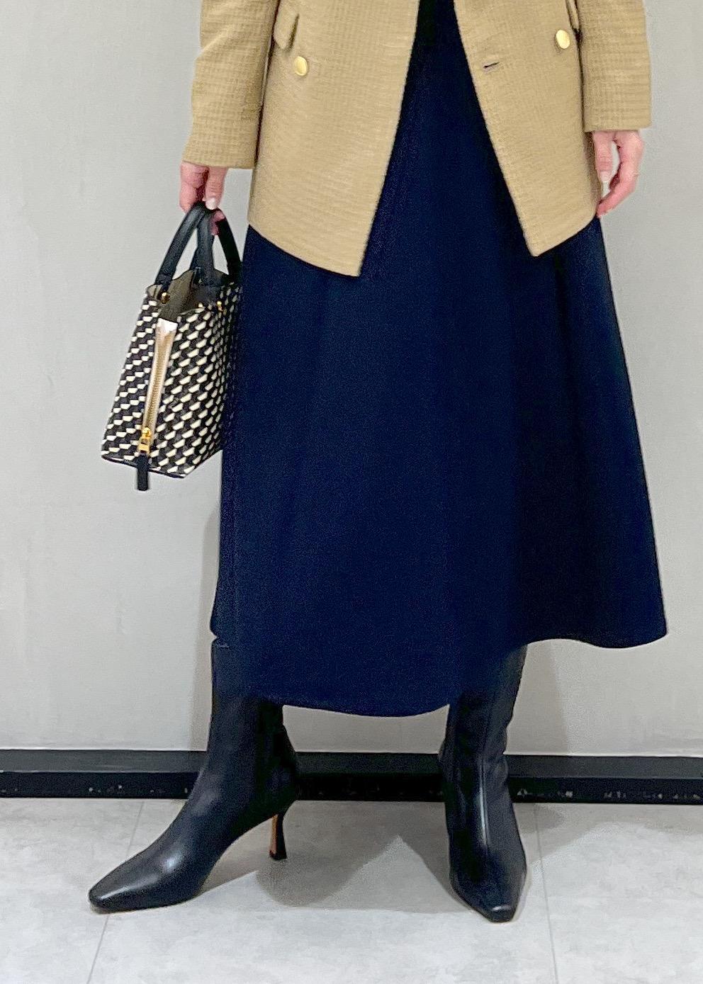 身頃にややゆとりがあるので、薄手のニットなどを合わせても◎
