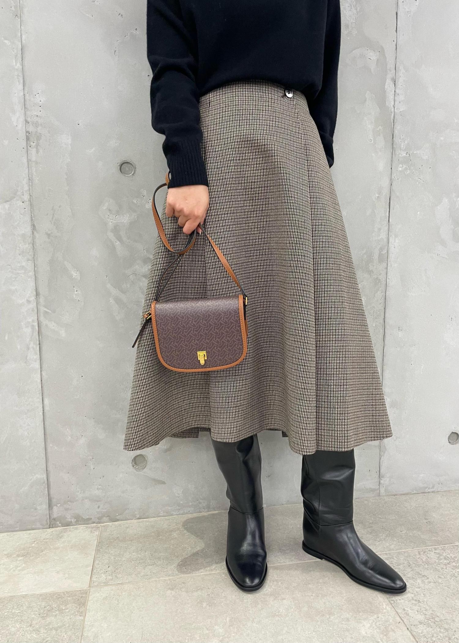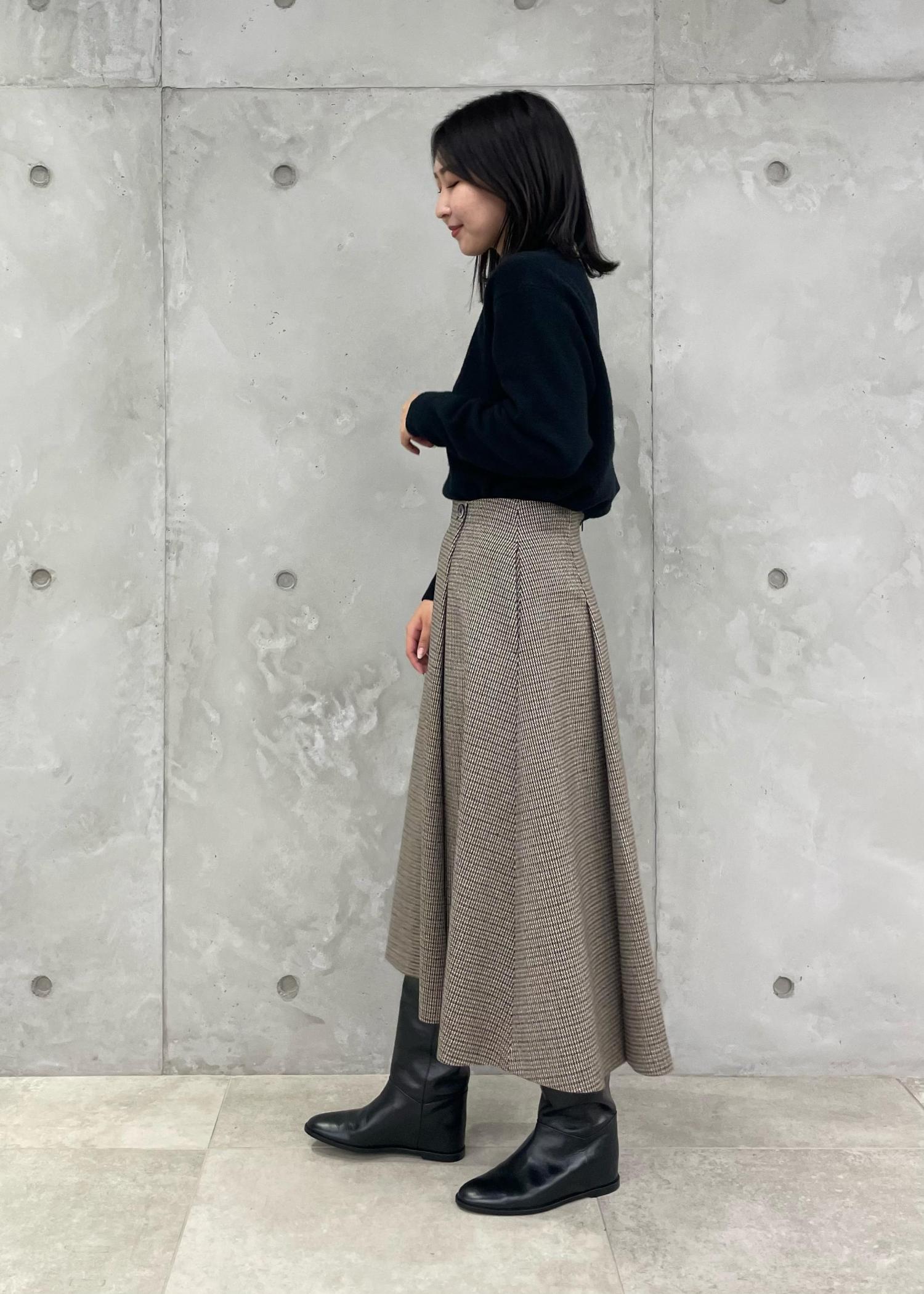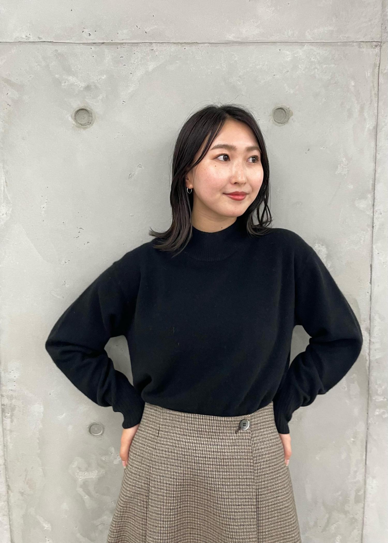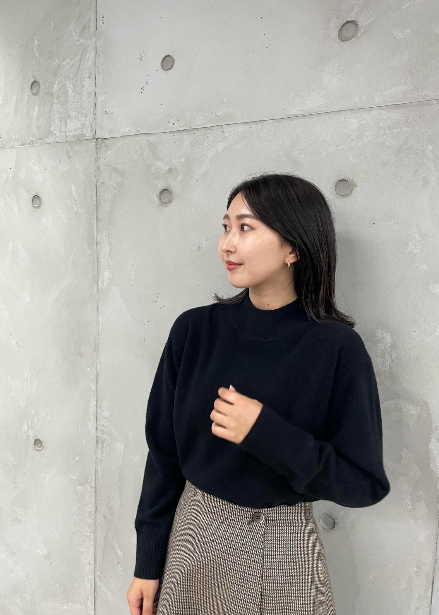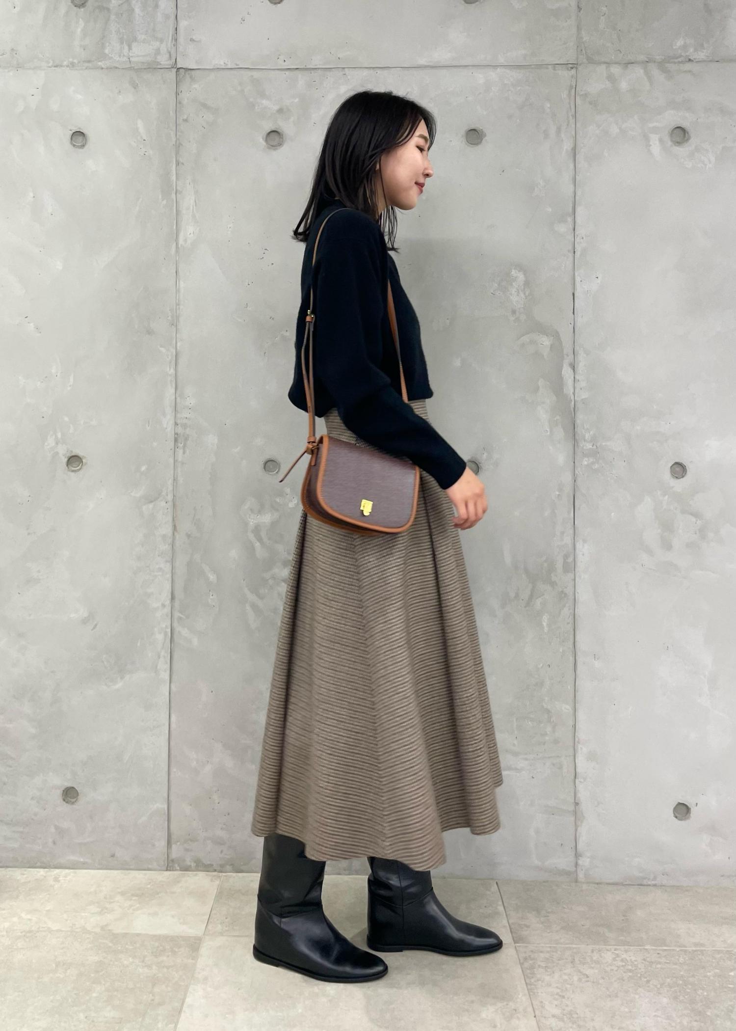 ハイネックのニットと合わせることでストール無しでも暖かく着用していただける秋コーデです♪