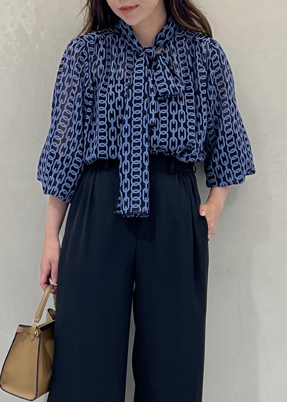 人と差がつくロペオリジナルのチェーン柄プリントのブラウス。