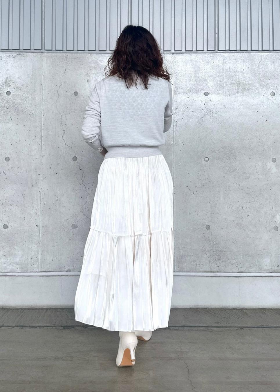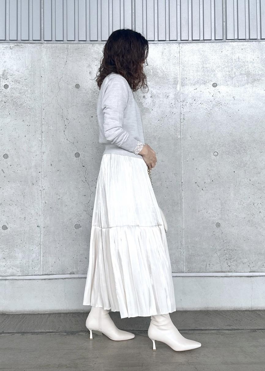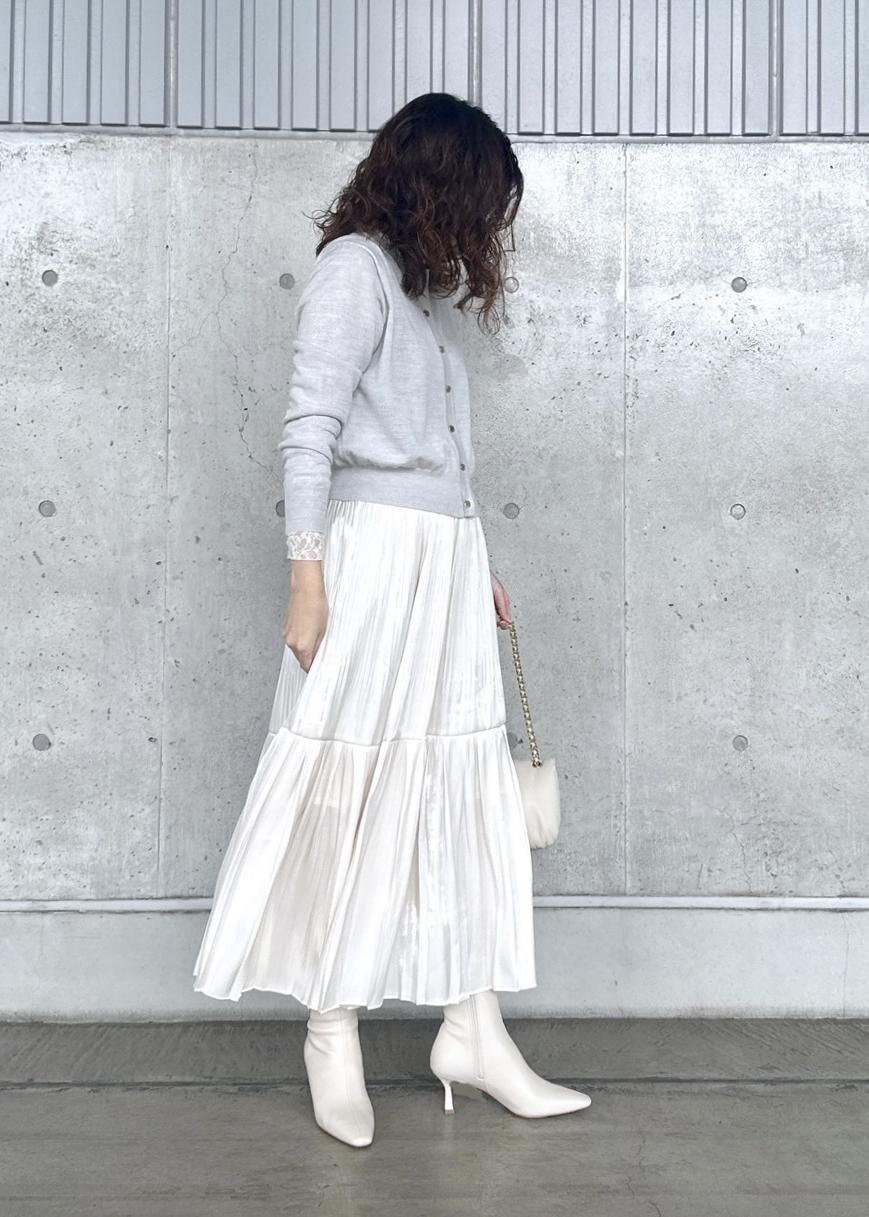 明るいグレーのカーディガンは白と合わせると統一感が出ますし、ダークな色と合わせると差し色になってくれる万能色です!