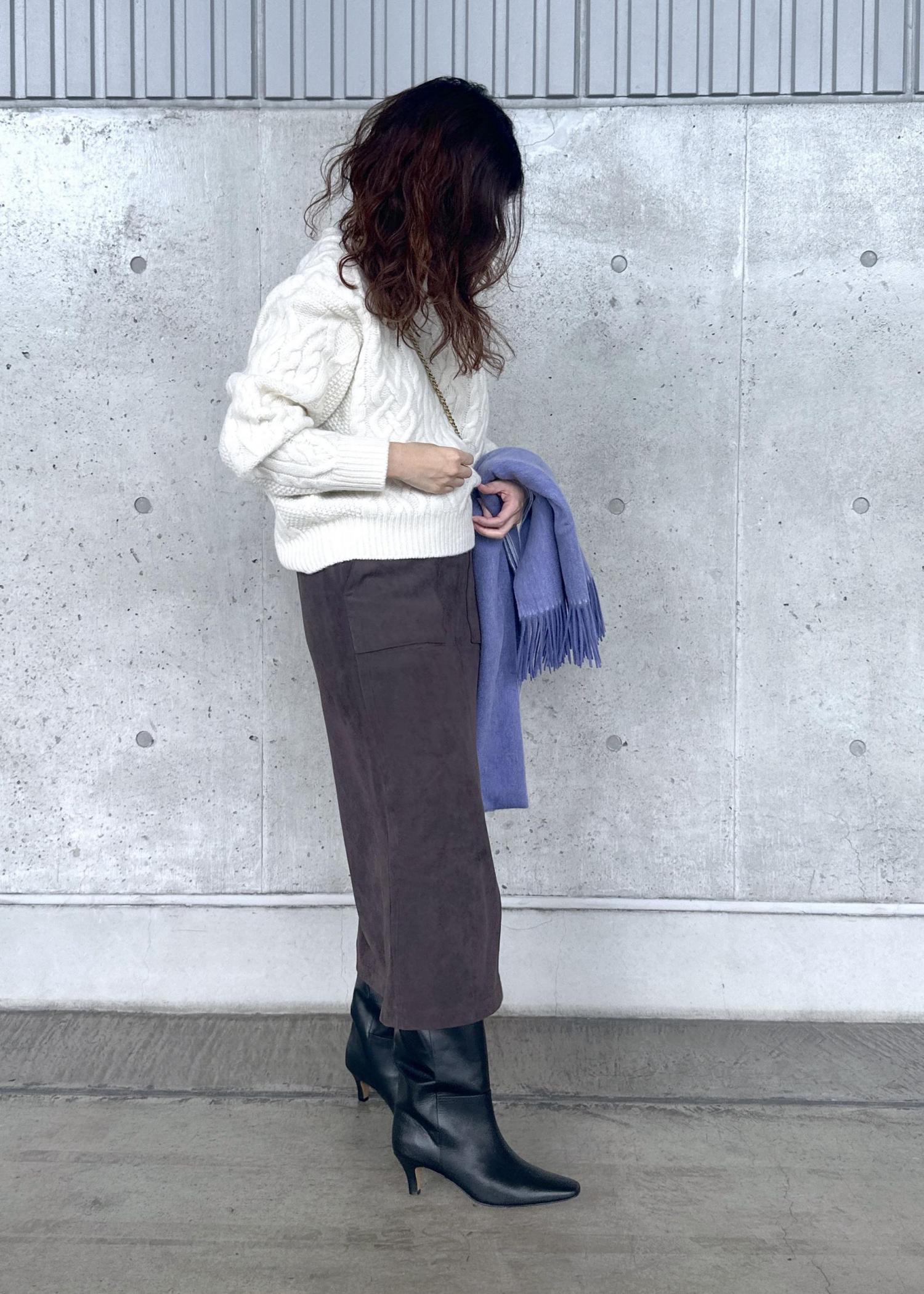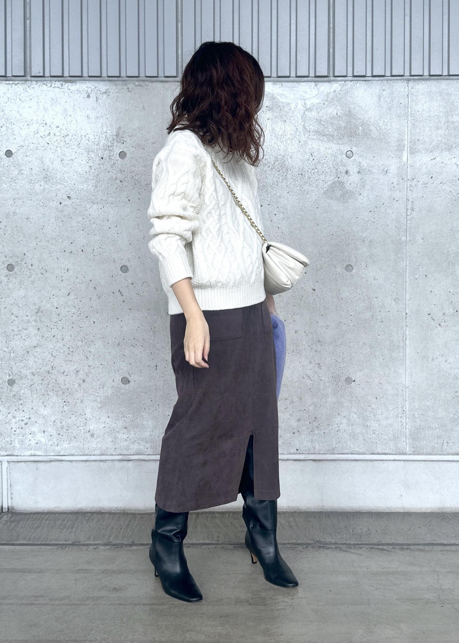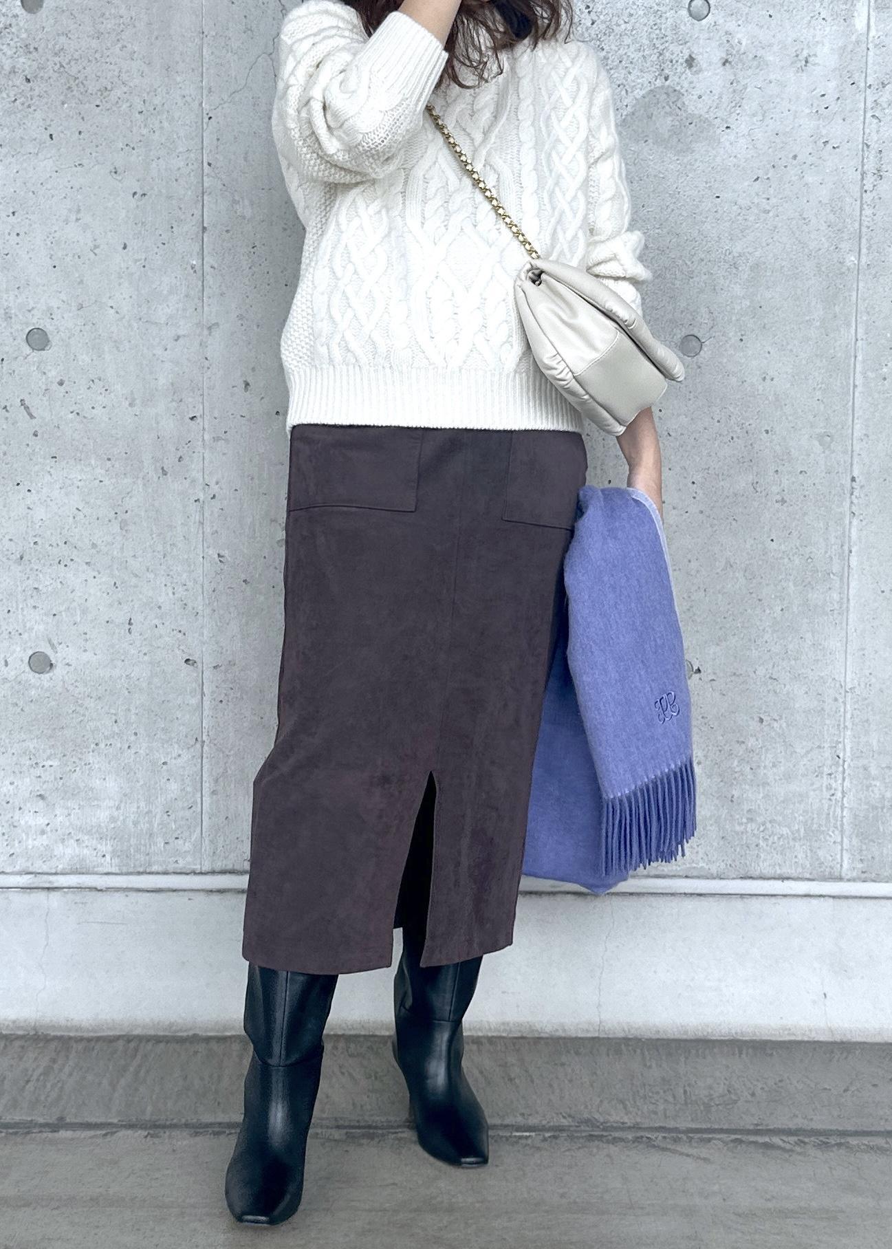 アウトレットROPÉ【高評価】スエードポケット付きスカートダークブラウン / 38¥19,800レビュー普段38サイズを着用。スリットがしっかり入っていてストレッチも効いているので歩きにくさはないです。素材に少し重みはありますが履くと特に気になりません。