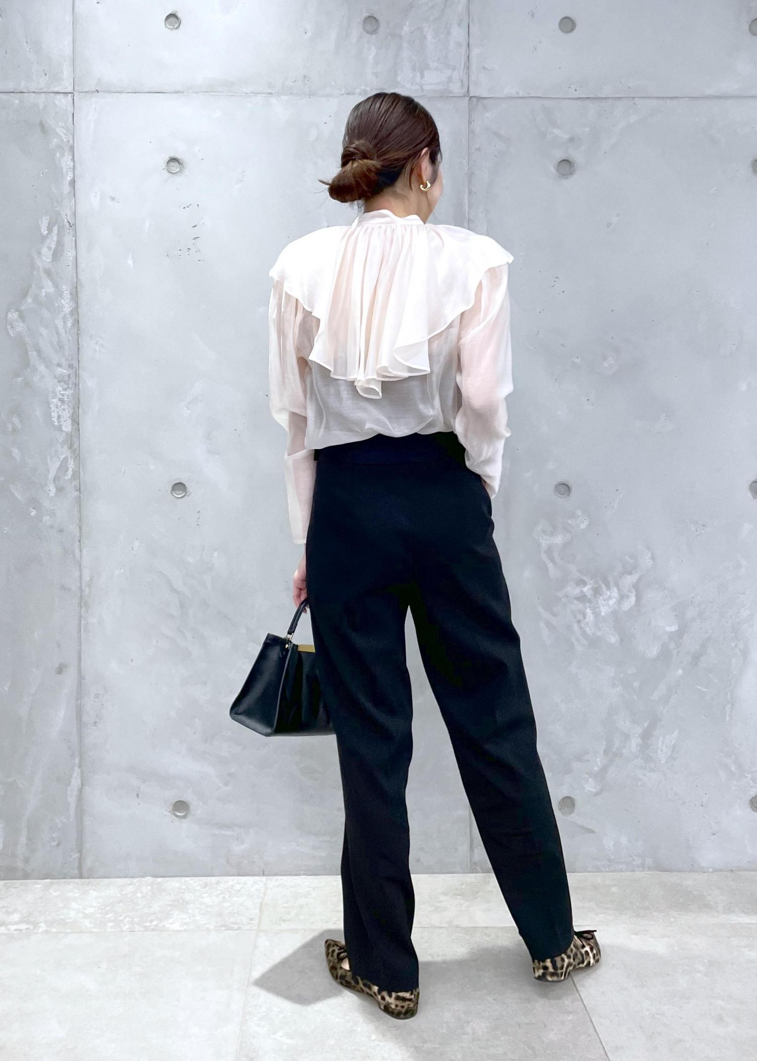 襟元にボリュームのあるフェミニンブラウスなので甘くなりすぎないようにブラックのパンツを合わせて少しカジュアル見えを意識。 ブラウスはデニムなどの合わせもオススメです! ※店頭及び屋外での撮影画像は、光の当たり具合で色味が異なって見える場合がございます。商品の色味はスタジオ撮影の画像をご参照下さい。 Instagramはじめました! ロペのお洋服やイベント、プライベートな事も発信していくのでお気軽にフォローしてくれると嬉しいです☆ @yui_rope LINEでロペスタッフに相談は【友だち追加】をタップをして下さい