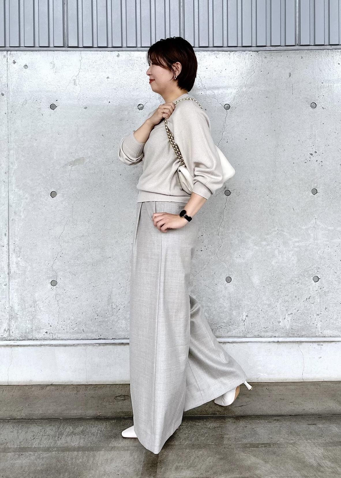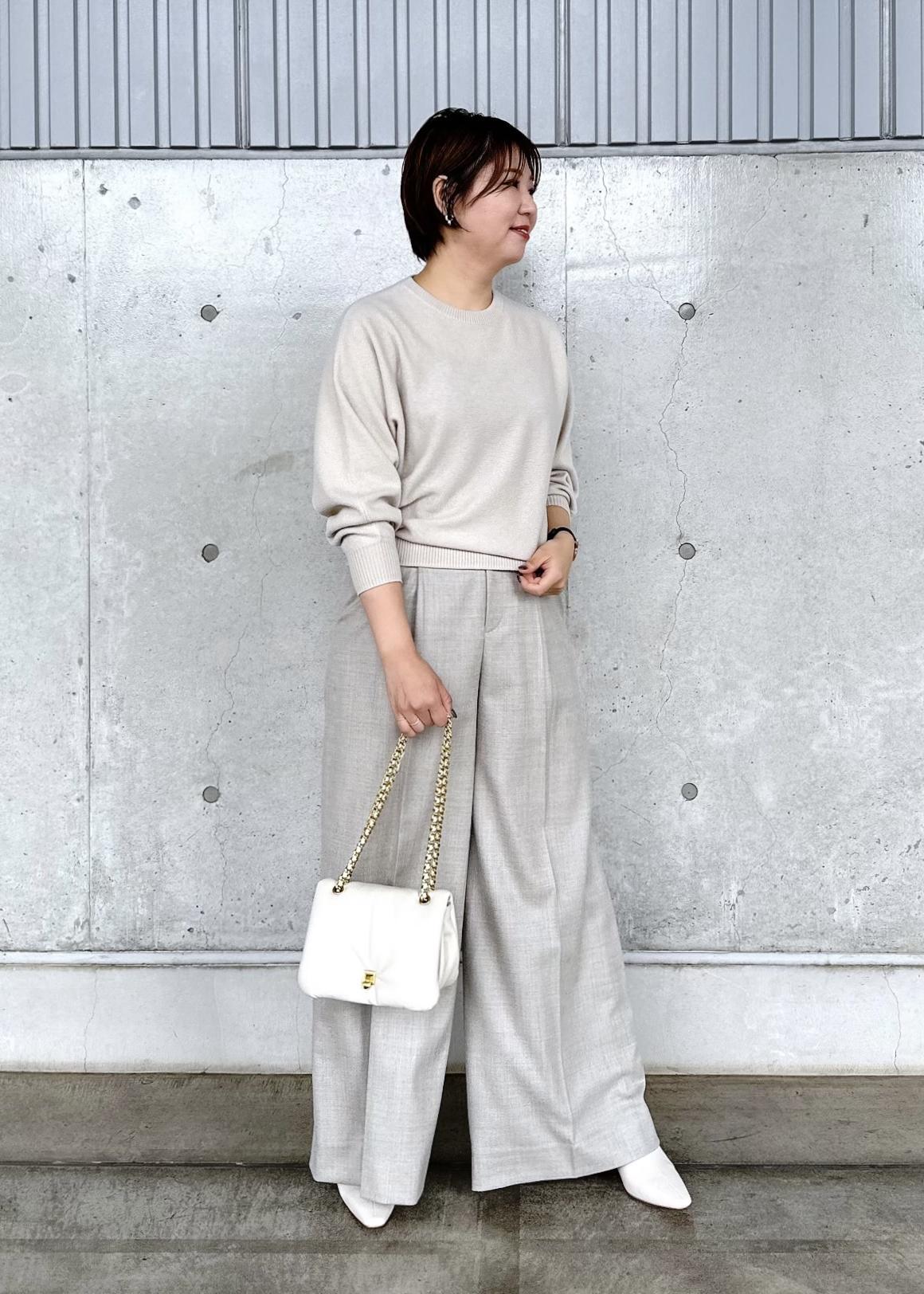 これからの季節にピッタリのウールカシミアニットとワイドシルエットがかっこいいパンツを合わせて、ワントーンコーデにしてみました!!!