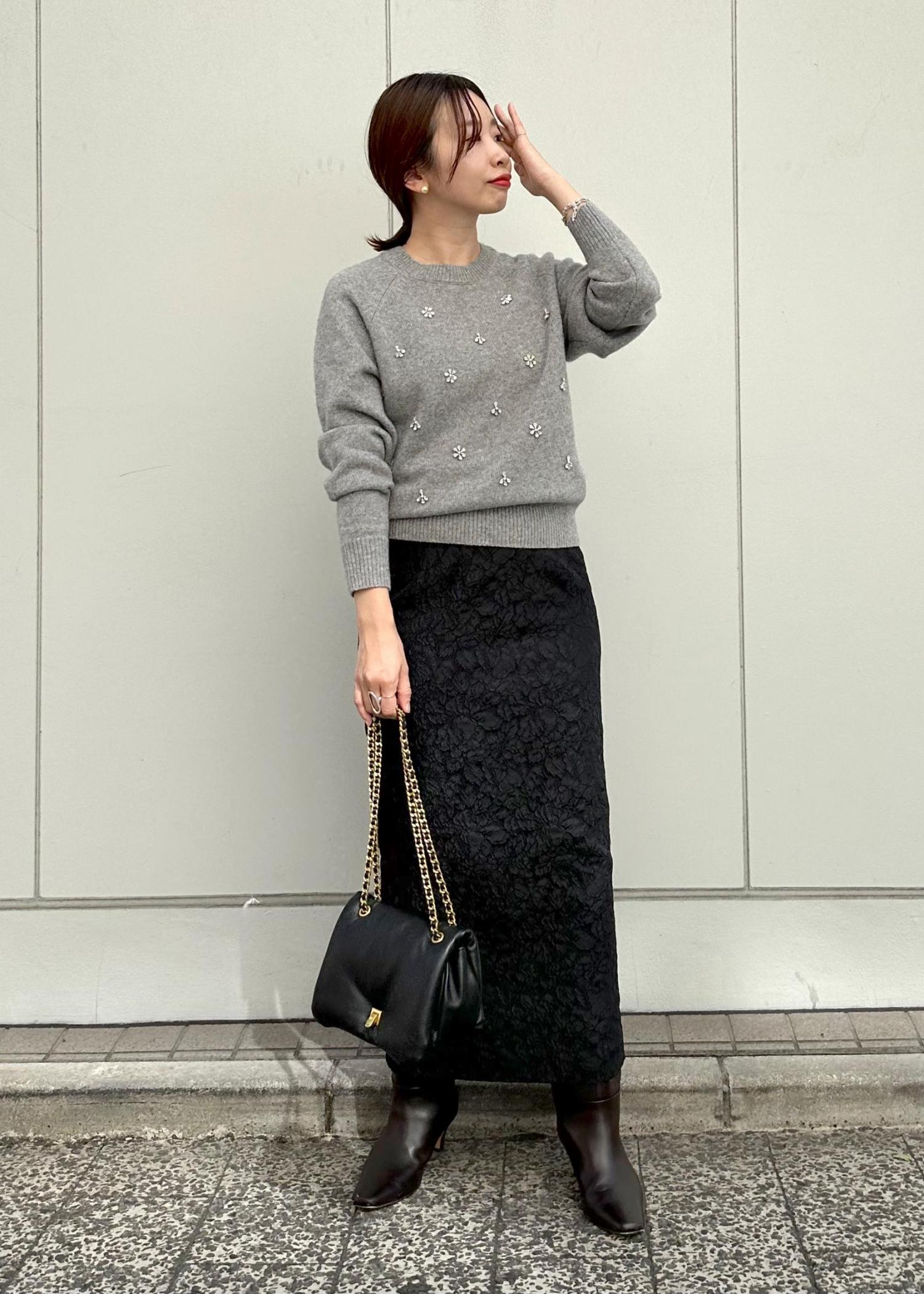 グレー×ブラックの落ち着いたトーンのコーデでも