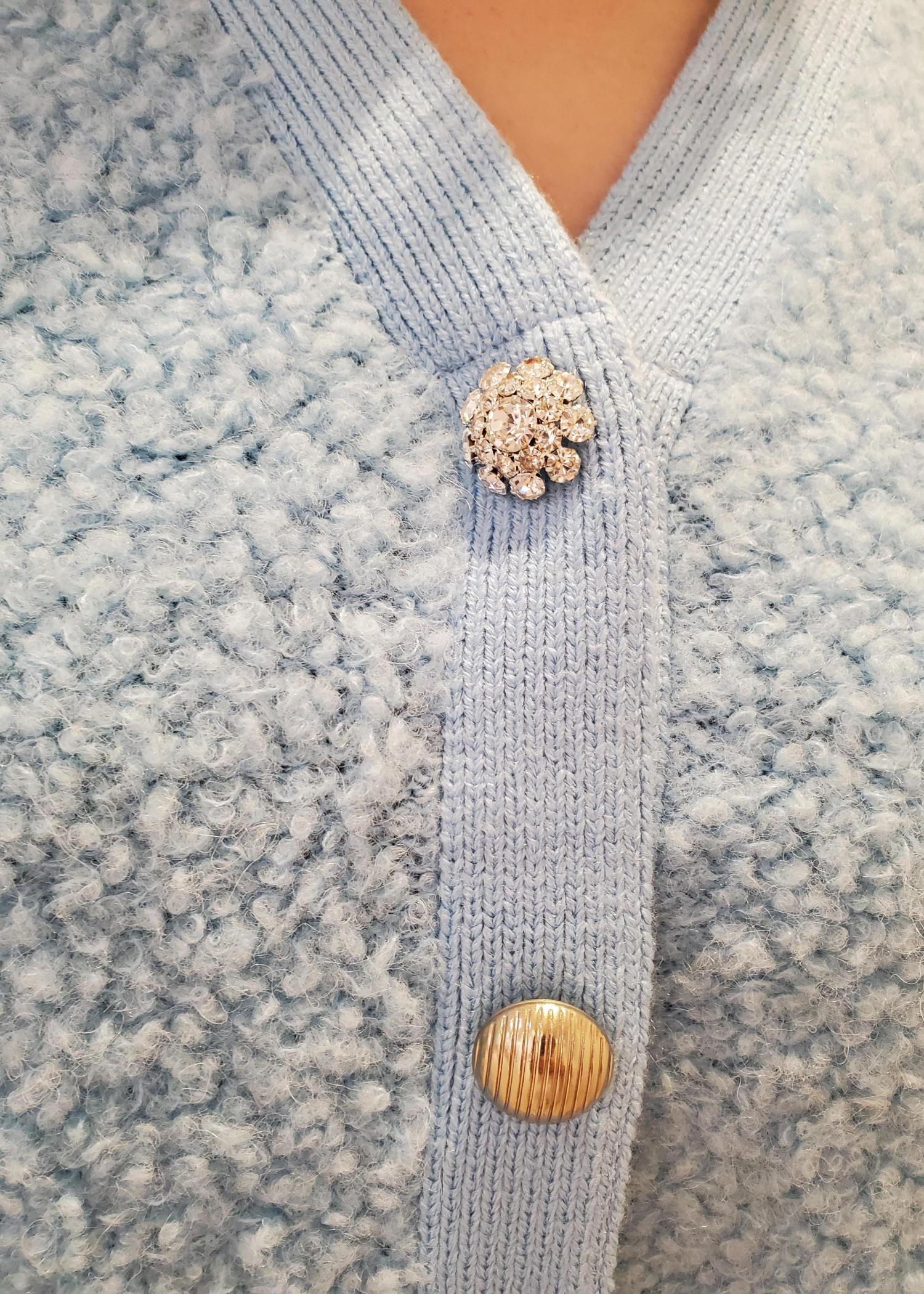 可愛らしいデザインの中に一際煌めくビジューボタン。 一枚でも着れ、長袖のインナーなどをレイヤードしても◎ 少し羽織るのにも丁度いい丈感です。 ※店頭及び屋外での撮影画像は、光のあたり具合で色味が異なって見える場合がございます。 商品の色味はスタジオ撮影の画像をご参照下さい。 LINEでロペスタッフに相談は【友だち追加】をタップして下さい。 ▪️♡ボタンを押してお気に入り! お気に入りしていただくと、気になったコーディネートや商品がチェックしやすくなります。 スタッフ・店舗TOPのフォローも合わせてご利用ください