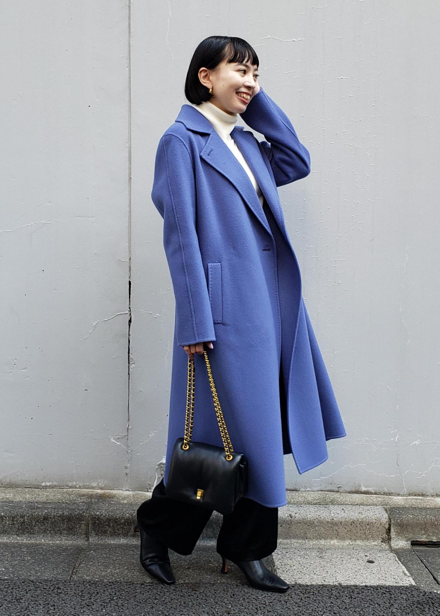 カラーが深みのあるブルーですが、生地が柔らかいのでかっこよくなり過ぎずにキレイめにお召しいただけます。