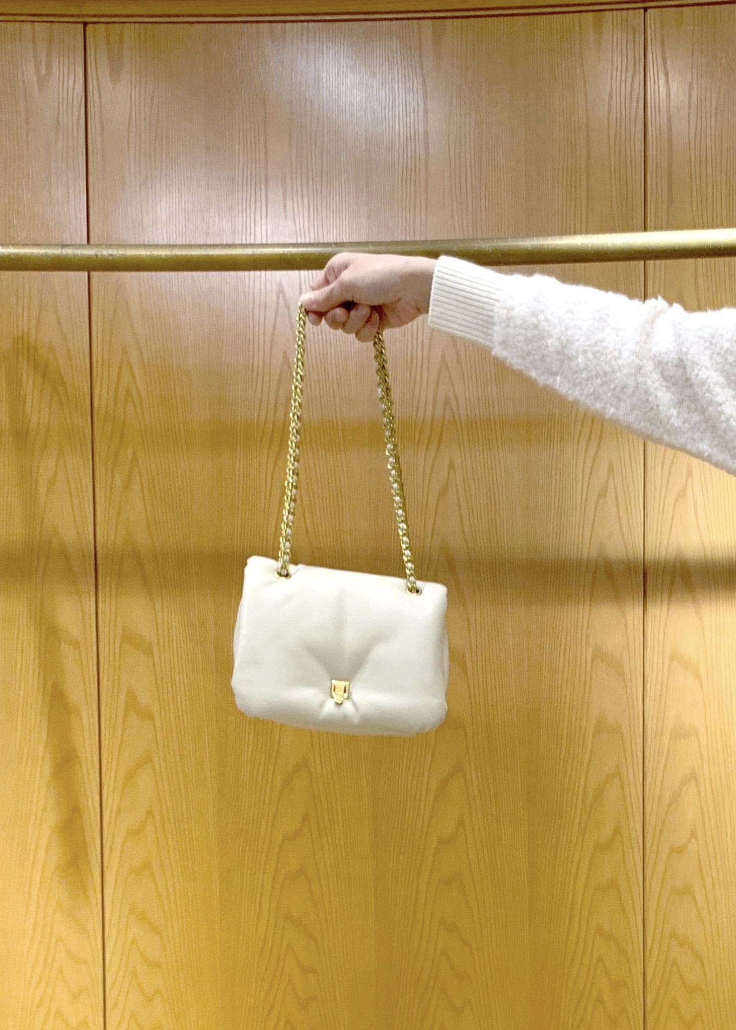 アウトレットROPÉ【雑誌掲載】リアルレザーパフィーフラップチェーンミニショルダーバッグオフホワイト / F¥12,320レビューコンパクトな容量ですが折り財布、ケータイ、ハンカチ、リップと必要最低限の荷物は収納可能です。