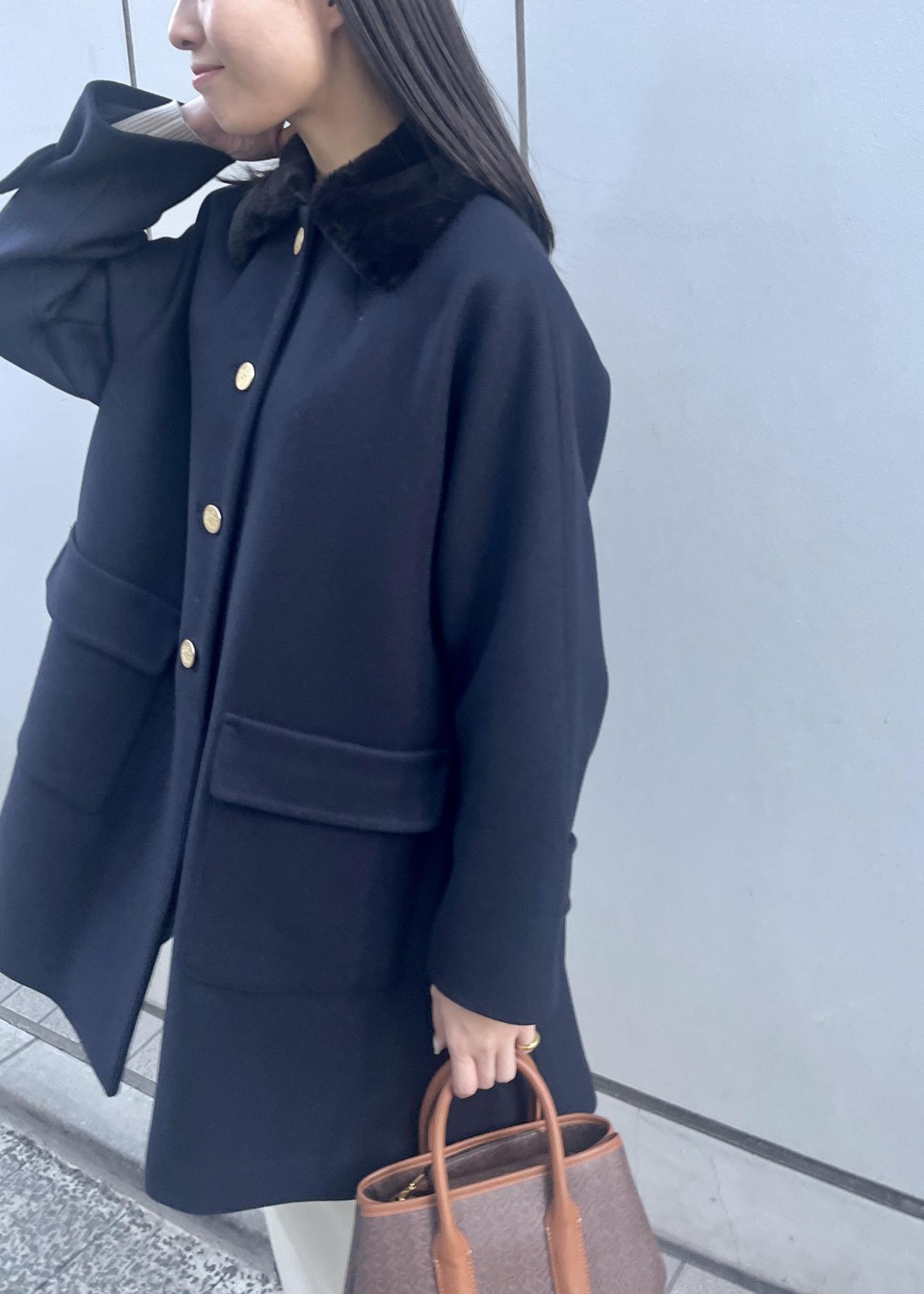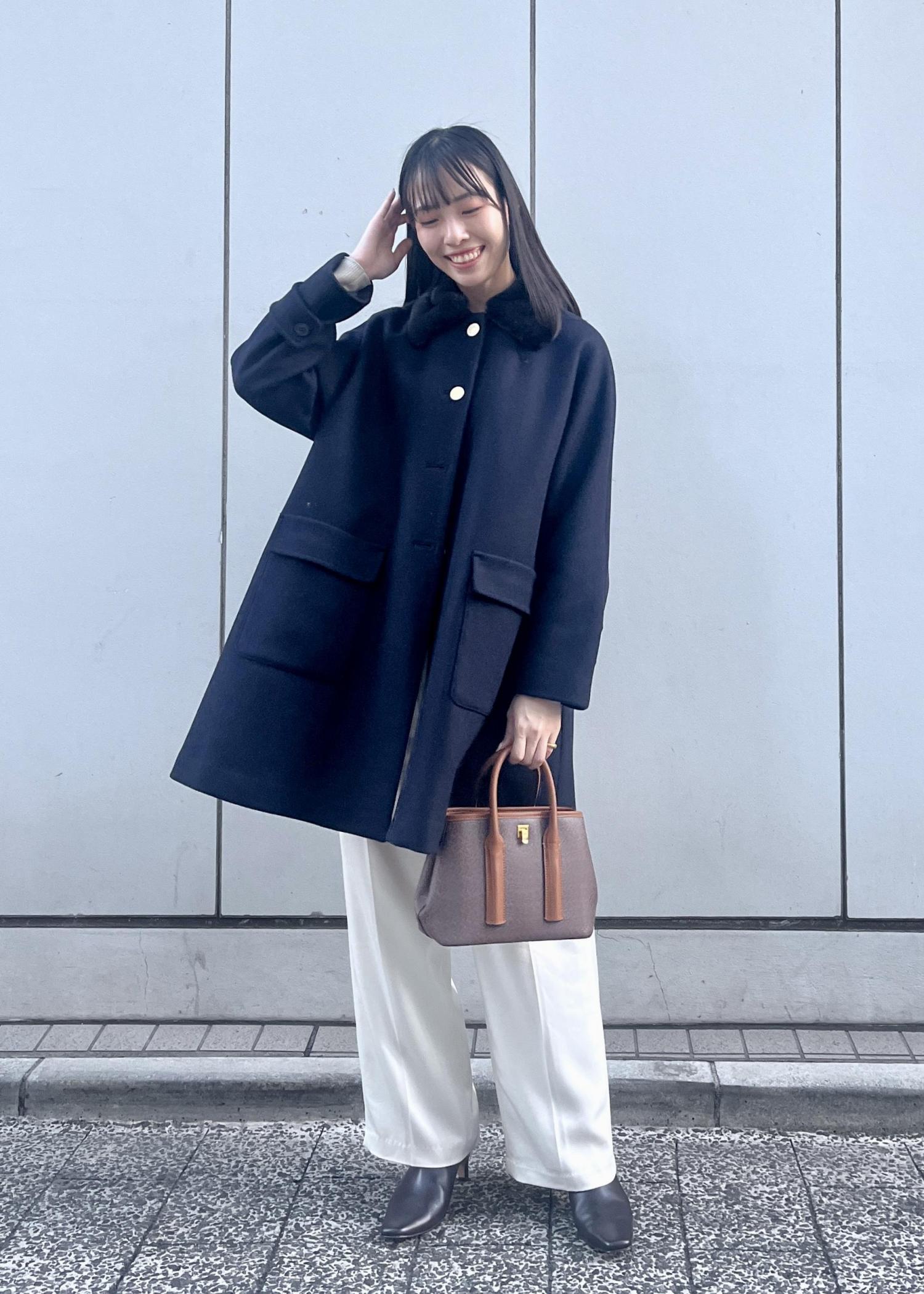 Aラインにファーの襟元がクラシカル感漂うミドル丈コートを主役にスタイリングしてみました!