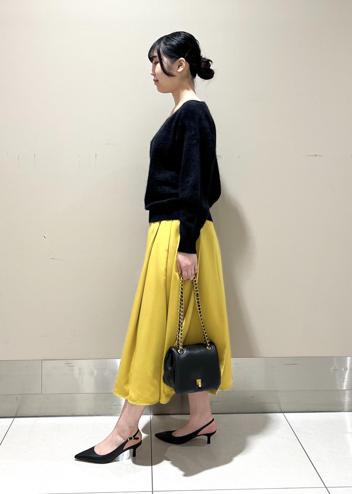 スカートの色味が明るいので、他を黒で統一して落ち着いたきれいめコーデを組みました☺︎