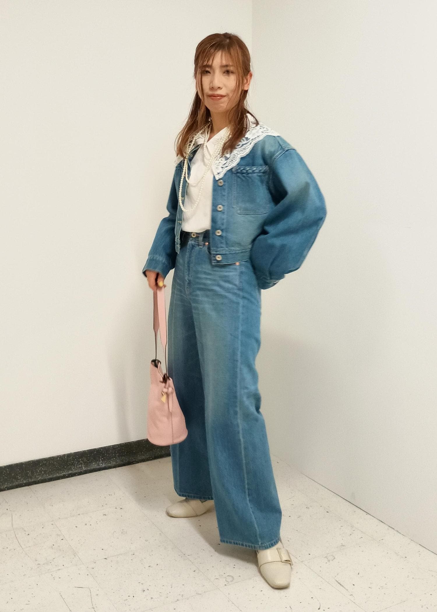ざっくりと大きめなふわふわカーディガンをラフに合わせたオフの日コーデ。デニムでゆるっとしたシルエットですが、カジュアルになりすぎないようインナートップスを黒で引き締めてちょっと大人っぽさもプラスしたスタイリングになっているのがポイントです。