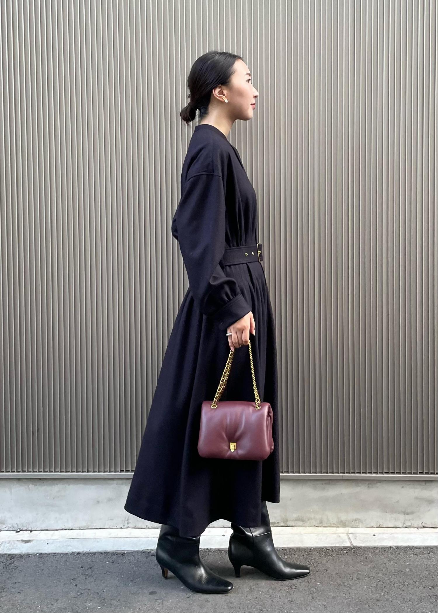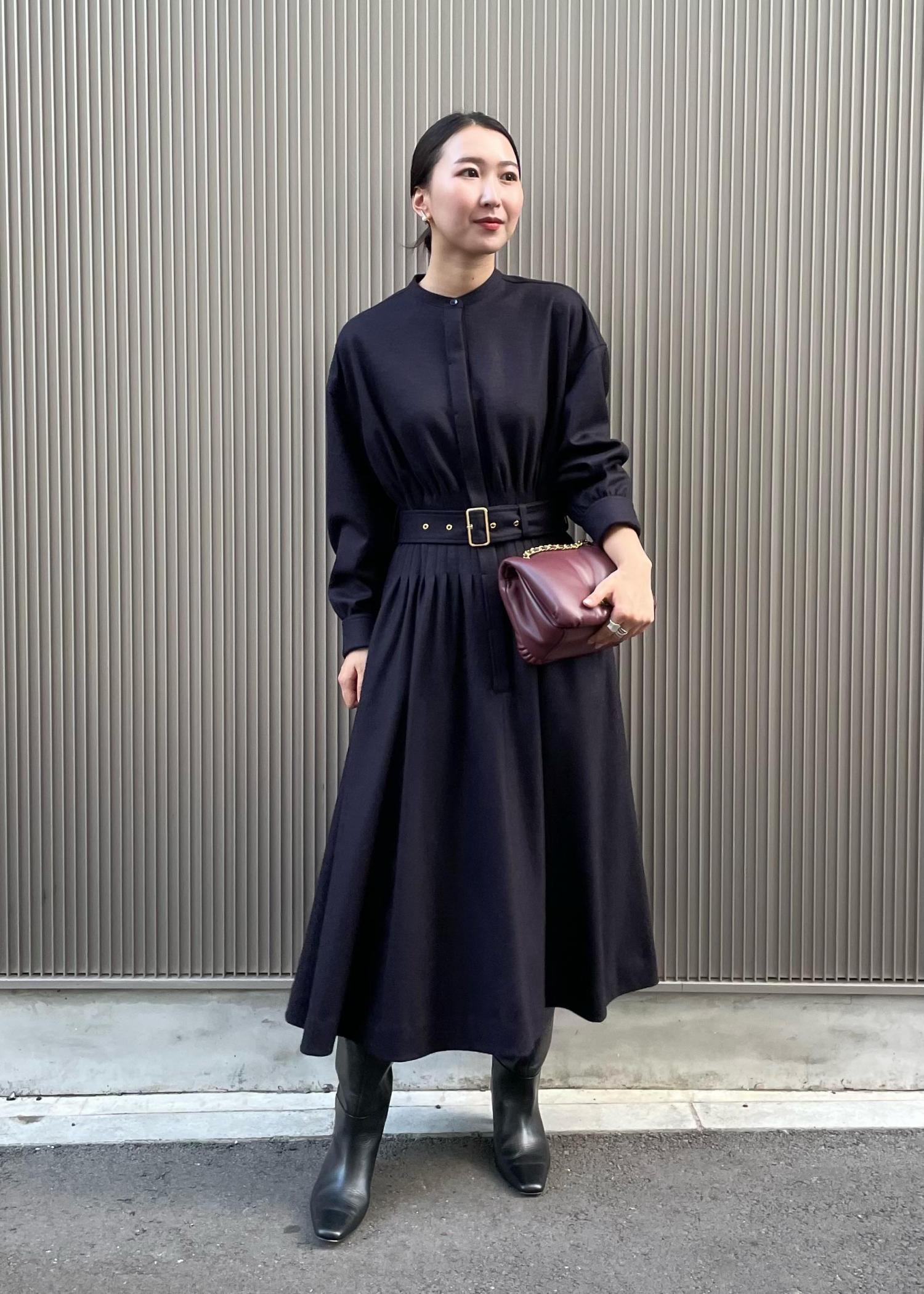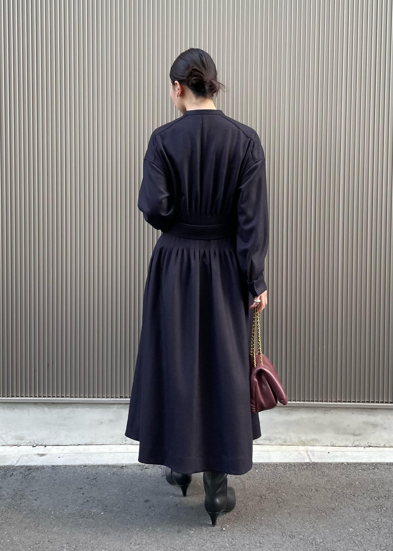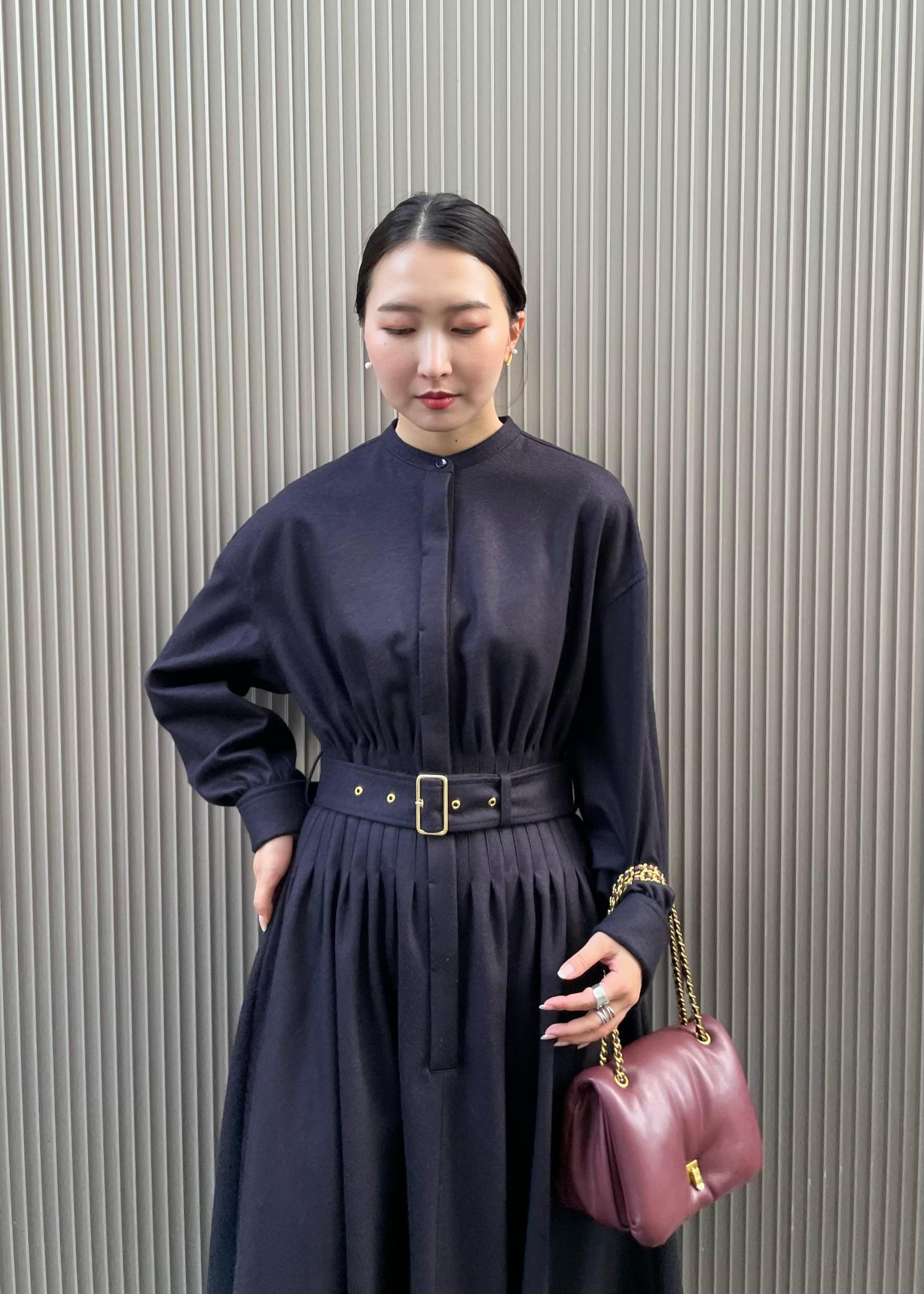 アウトレットROPÉウールジャージーワンピース【エディター三尋木奈保さんコラボ】ネイビー / 38¥19,800レビュー163cmで38サイズ着用。(サンプル)