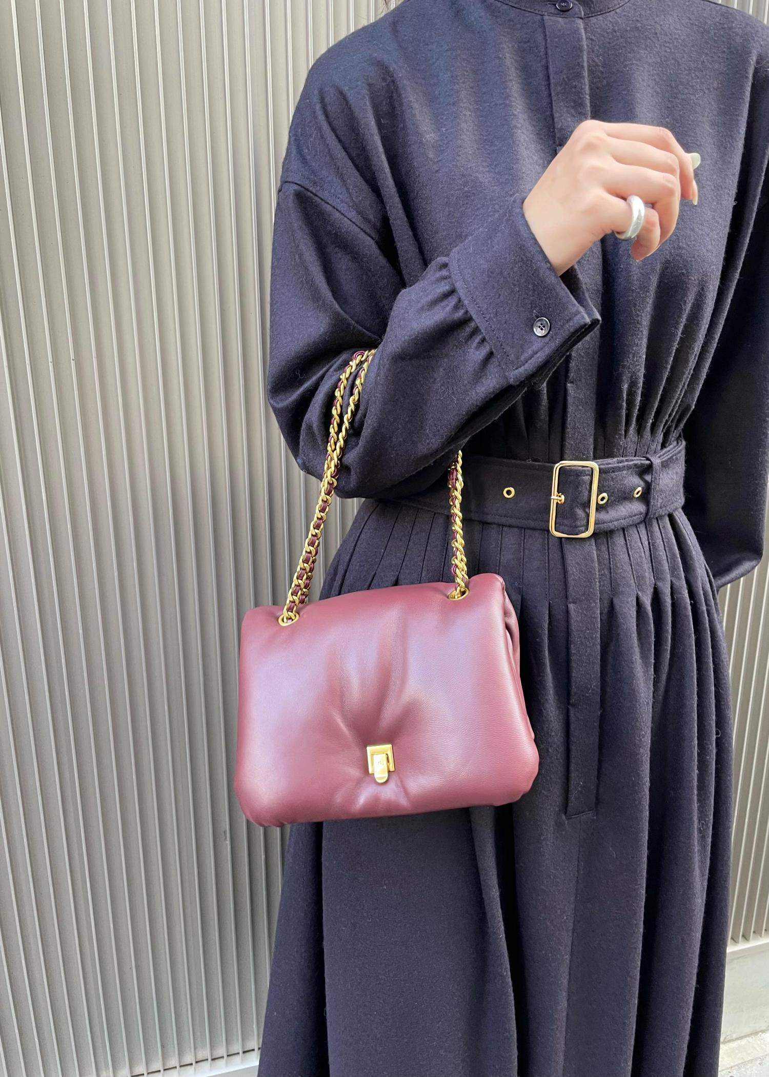 アウトレットROPÉ【雑誌掲載】リアルレザーパフィーフラップチェーンミニショルダーバッグワイン / F¥12,320レビューミニ財布・携帯・リップなど必要最低限の荷物は入れていただけます。