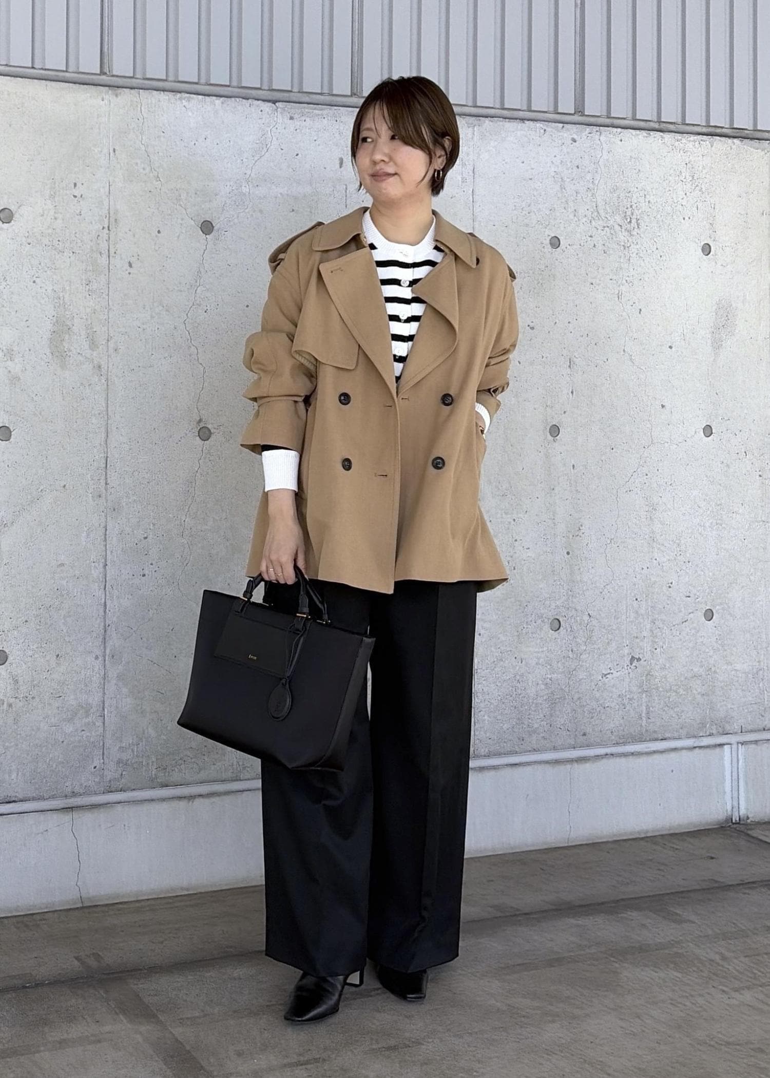 ヒップが隠れる丈感ですが、あまり広がらずスッキリ着ていただける1枚です!