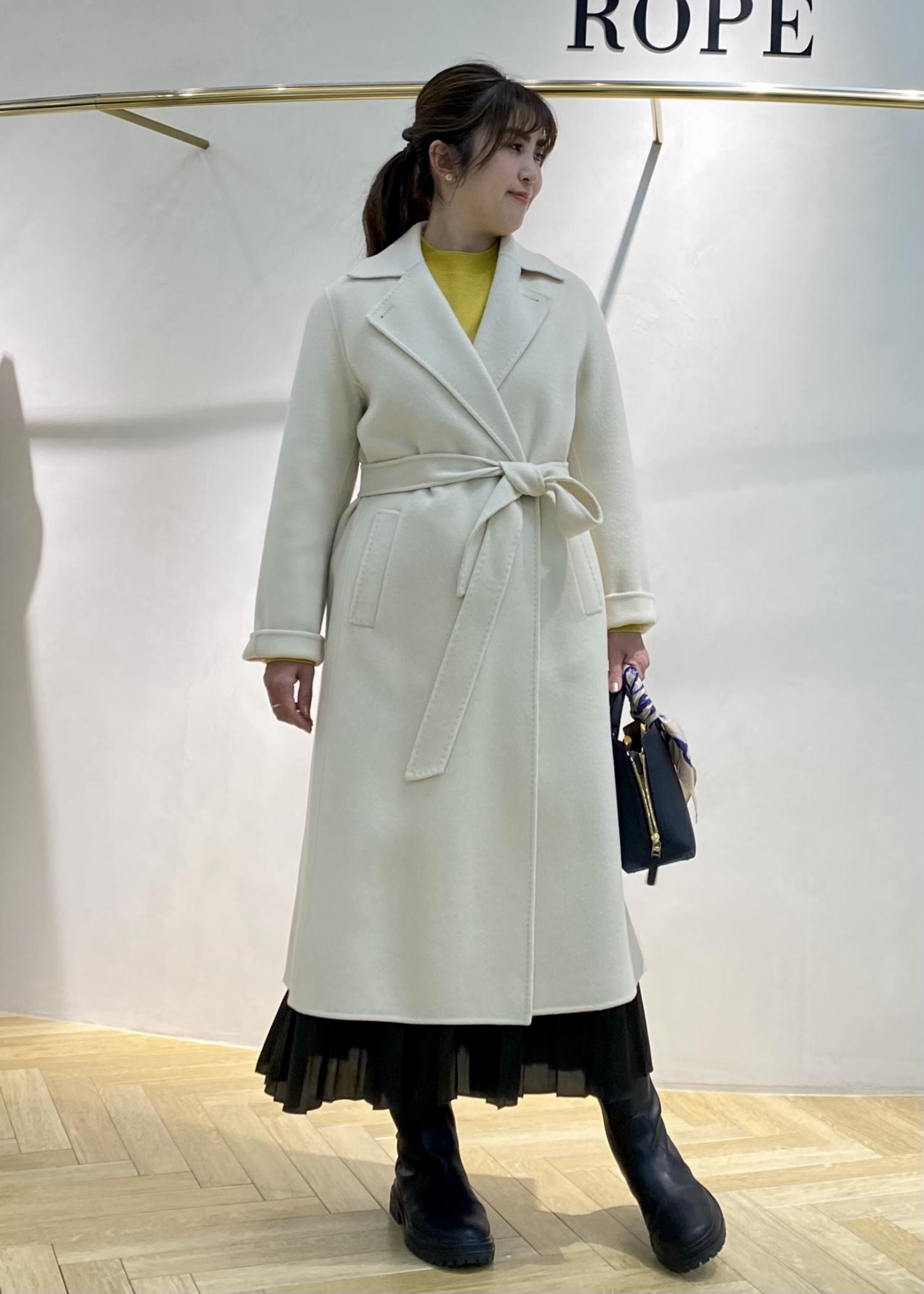 アウトレットROPÉ【高評価】【SUPER100's/140's】シャルムリバー2WAYロングコートキナリ / 38¥51,920レビュー38サイズを着用しています。