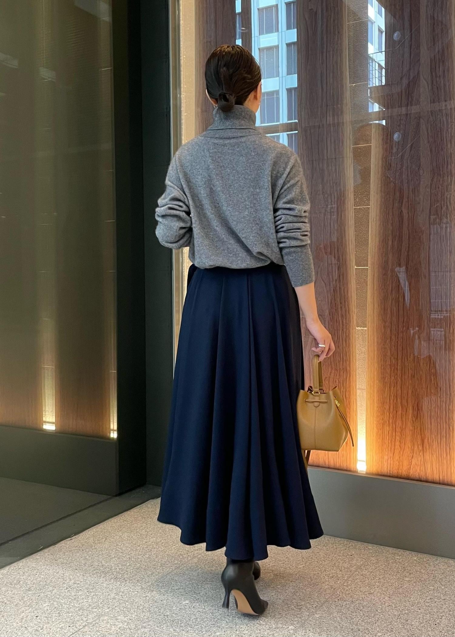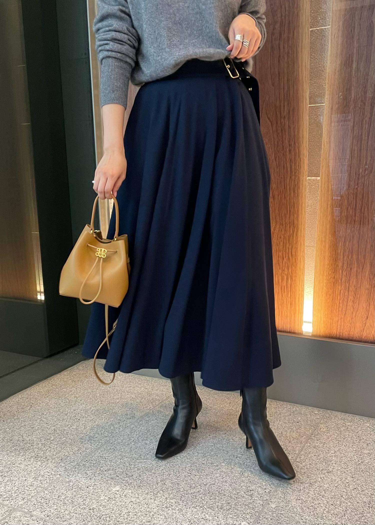 アウトレットROPÉジョーゼットフレアースカート【エディター三尋木奈保さんコラボ】ネイビー / 38¥18,150レビュー163cmで38サイズ着用。