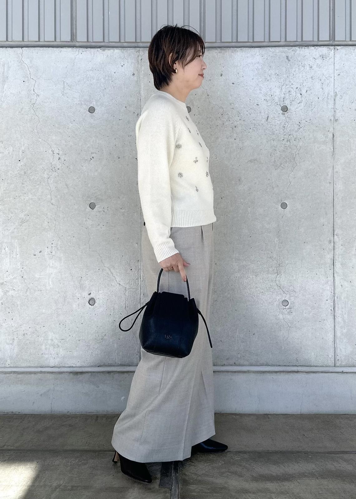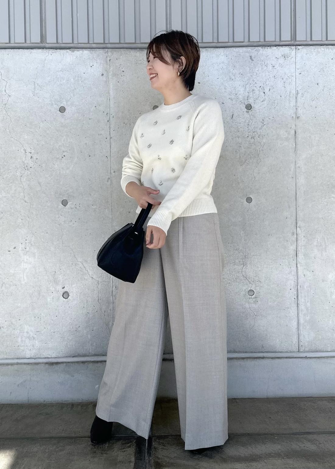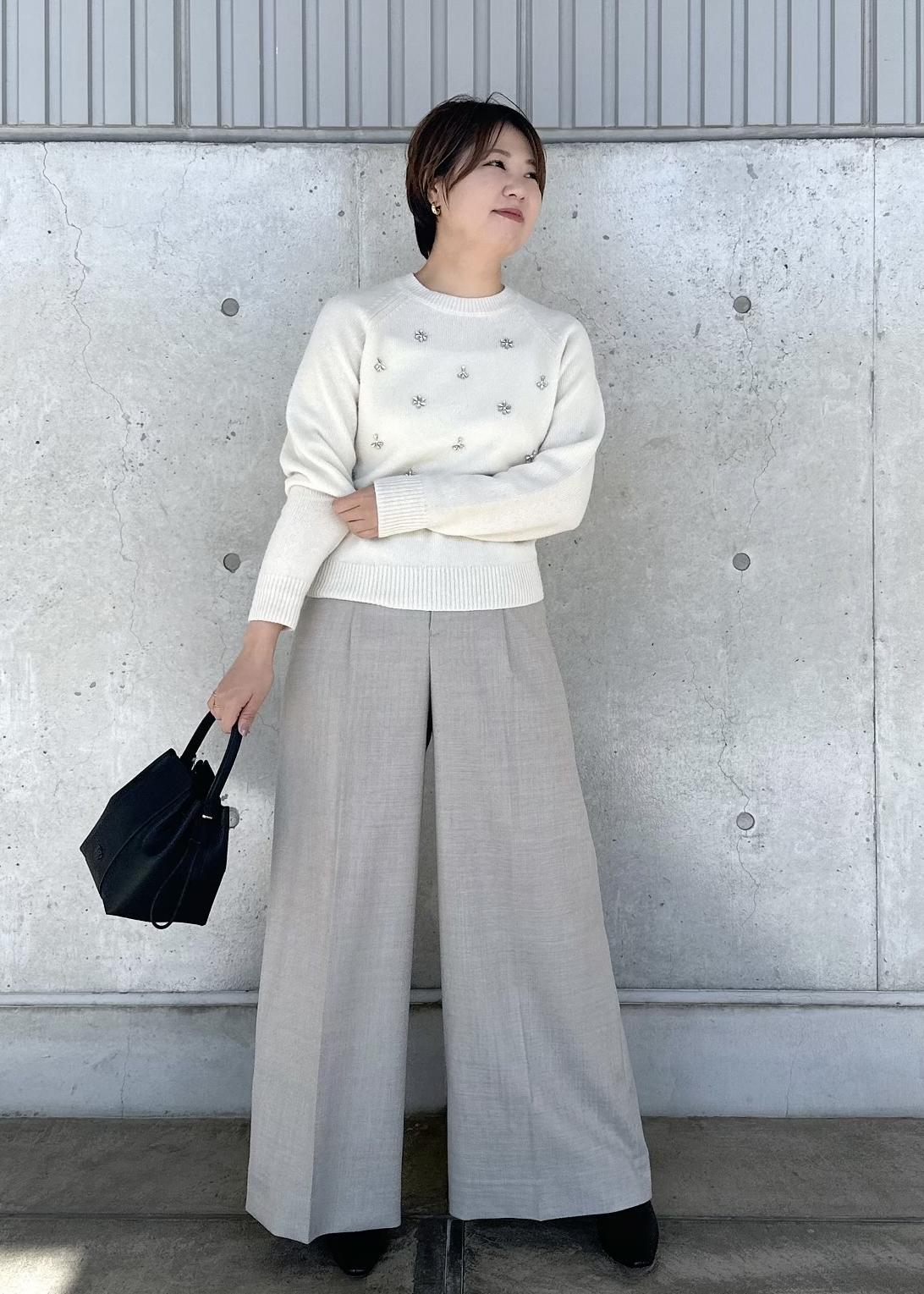 キラキラビジューが可愛いニットにワイドパンツを合わせて着てみました!! これからの季節にピッタリなコーディネートです♪ お仕事やお出かけにもオススメ◎ ♡ボタンを押してお気に入り! お気に入りしていただくと、気になったコーディネートや商品がチェックしやすくなります。 ※その他の掲載のない商品はスタッフの私物です。 ※店頭及び屋外での撮影画像は、光の当たり具合で色味が異なって見える場合がございます。 商品の色味はスタジオ撮影の画像をご参照下さい。 LINE接客も承ってます! お取り置きなどもお伺い出来ますので、お気軽にメッセージ送ってください! --