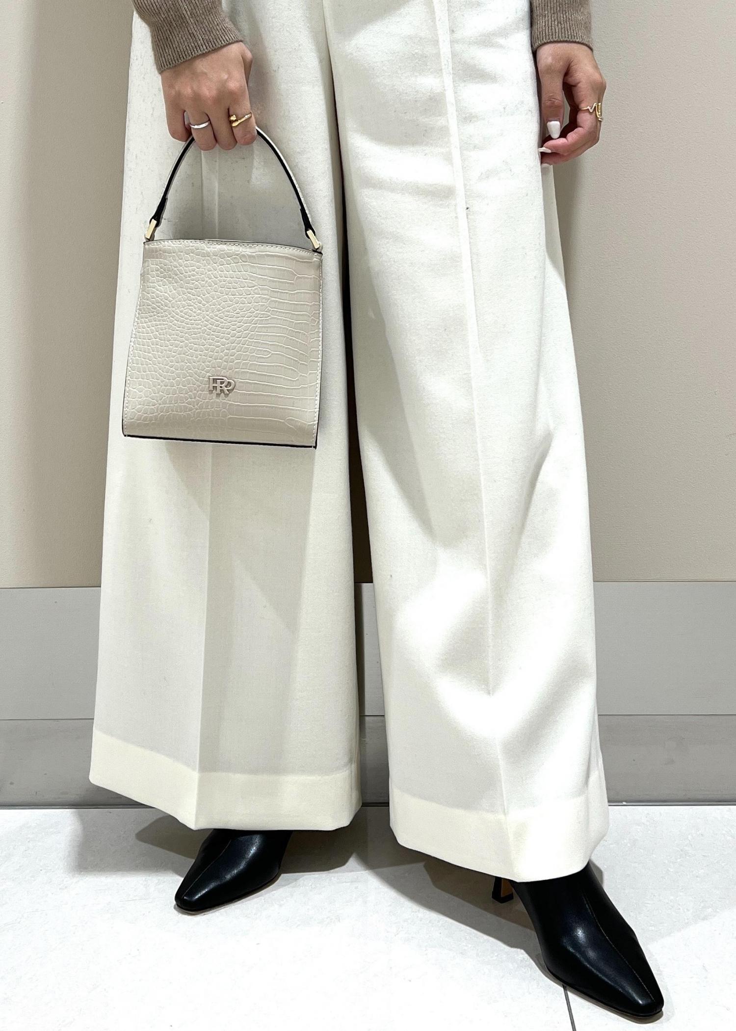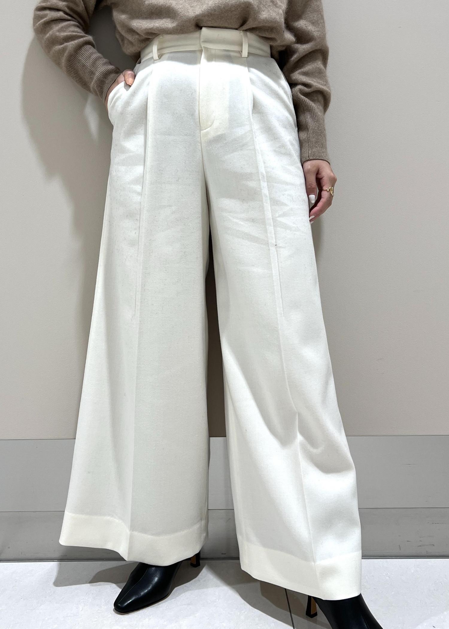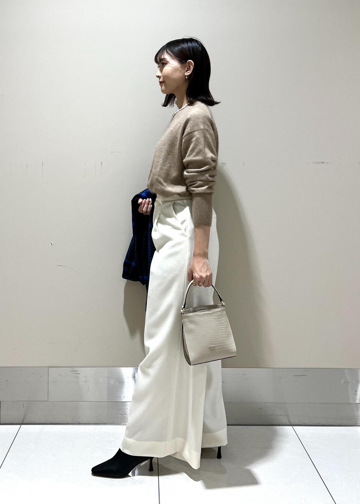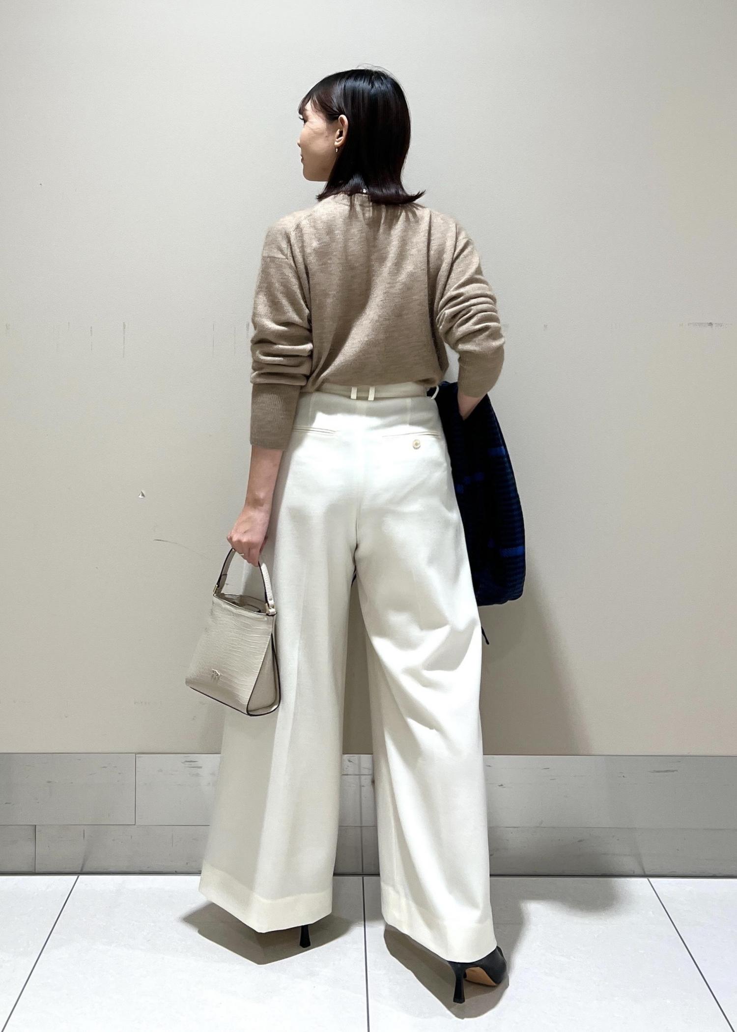 着心地が良いベージュのニットに、白のワイドパンツを合わせてみました♪