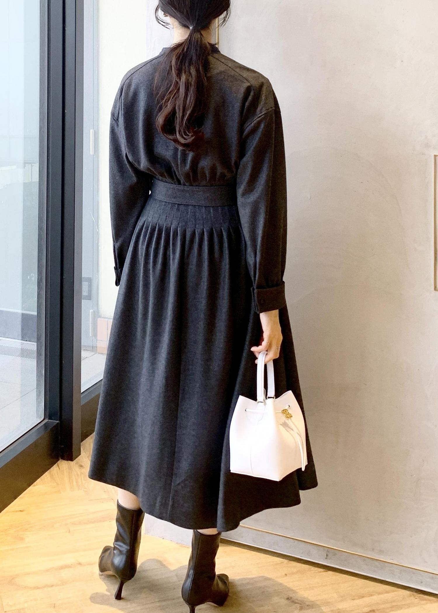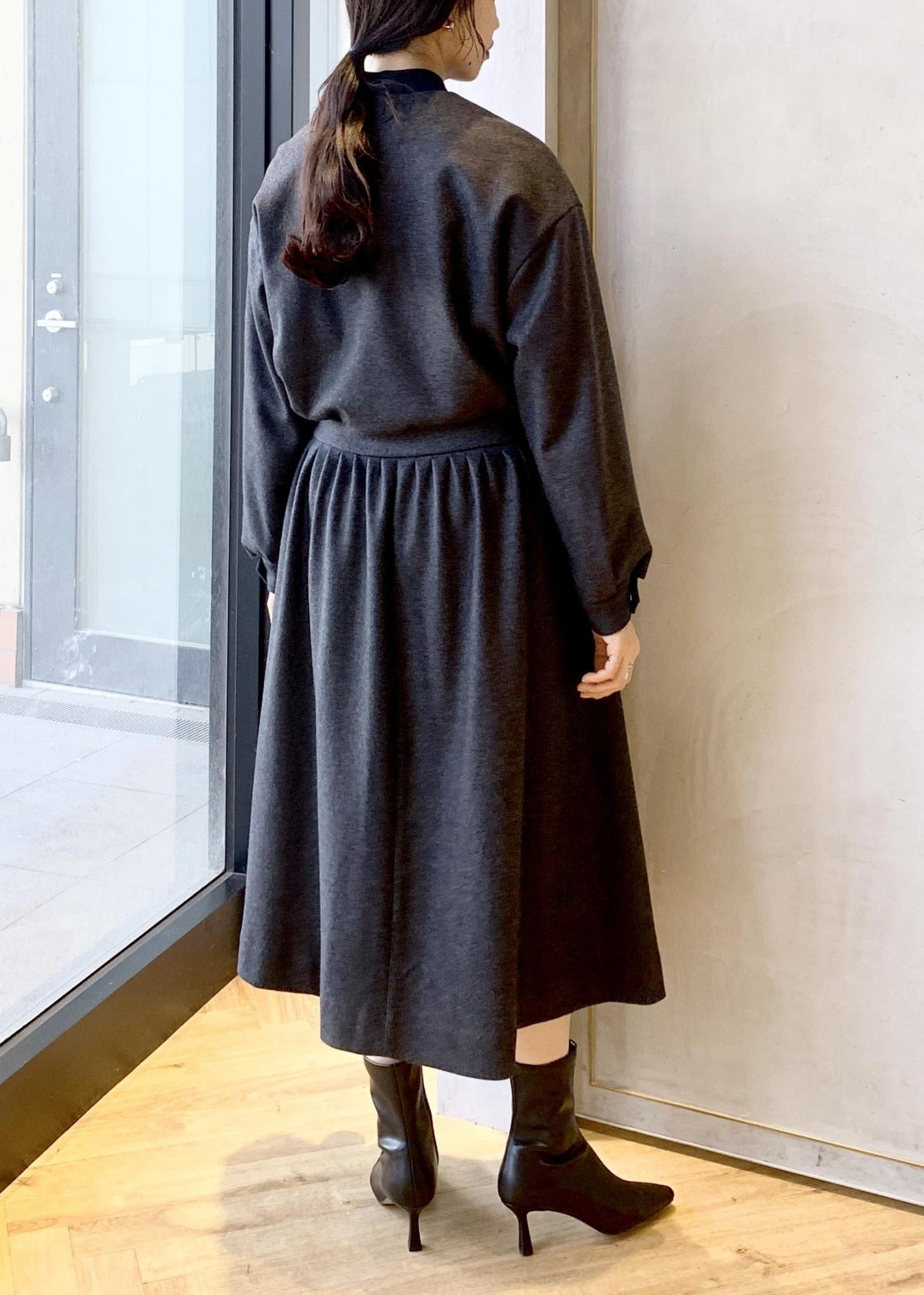 ウエストにタックがふんだんに入っていて分量もたっぷりしているので、ウエストから裾にかけてのフレアシルエットがとても綺麗です。 -