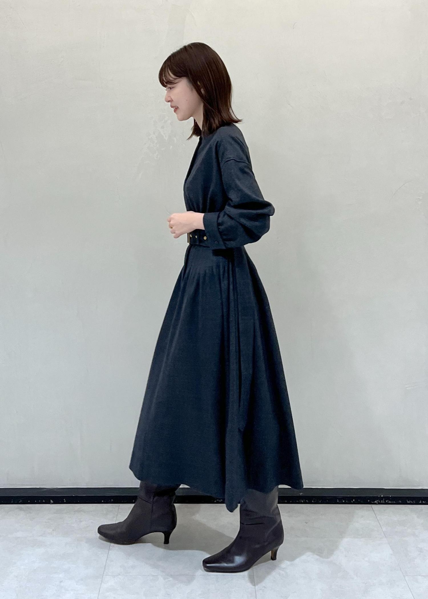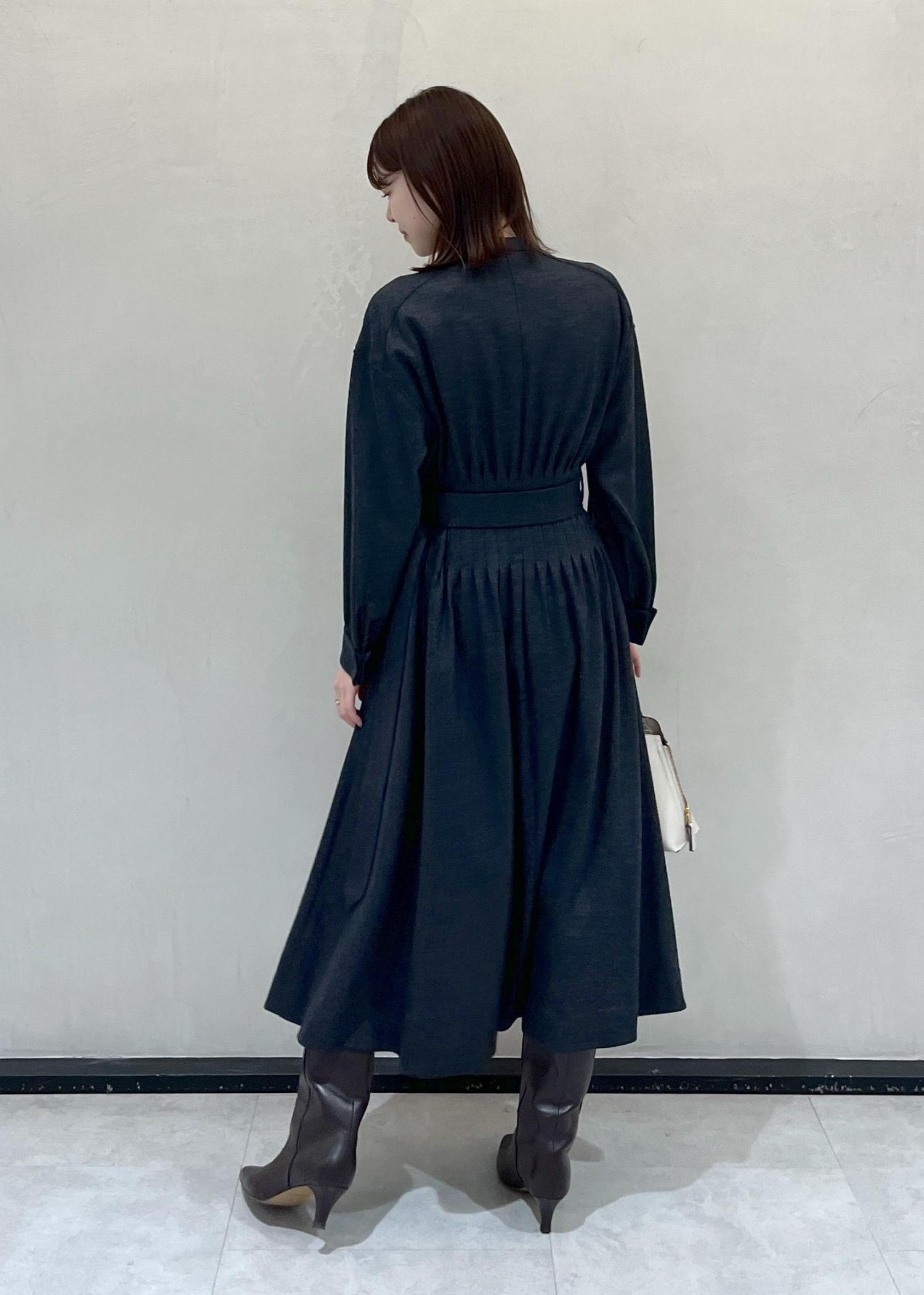 アウトレットROPÉウールジャージーワンピース【エディター三尋木奈保さんコラボ】チャコール / 36¥19,800レビュー160cm、36サイズ着用。