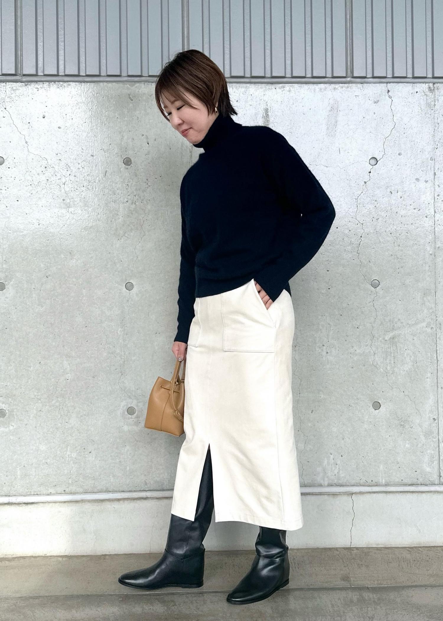 丈感はふくらはぎが隠れるので、フラットシューズやロングブーツとも合わせれます。