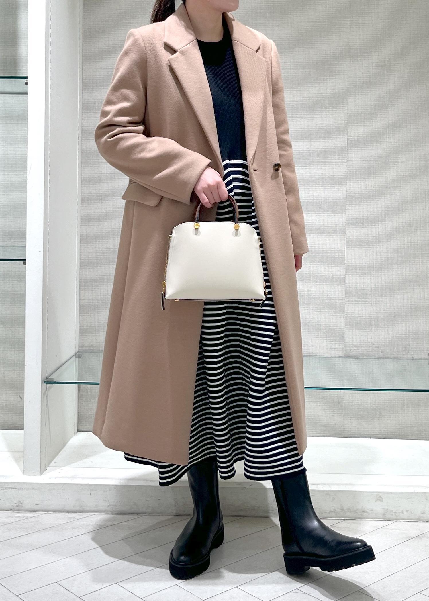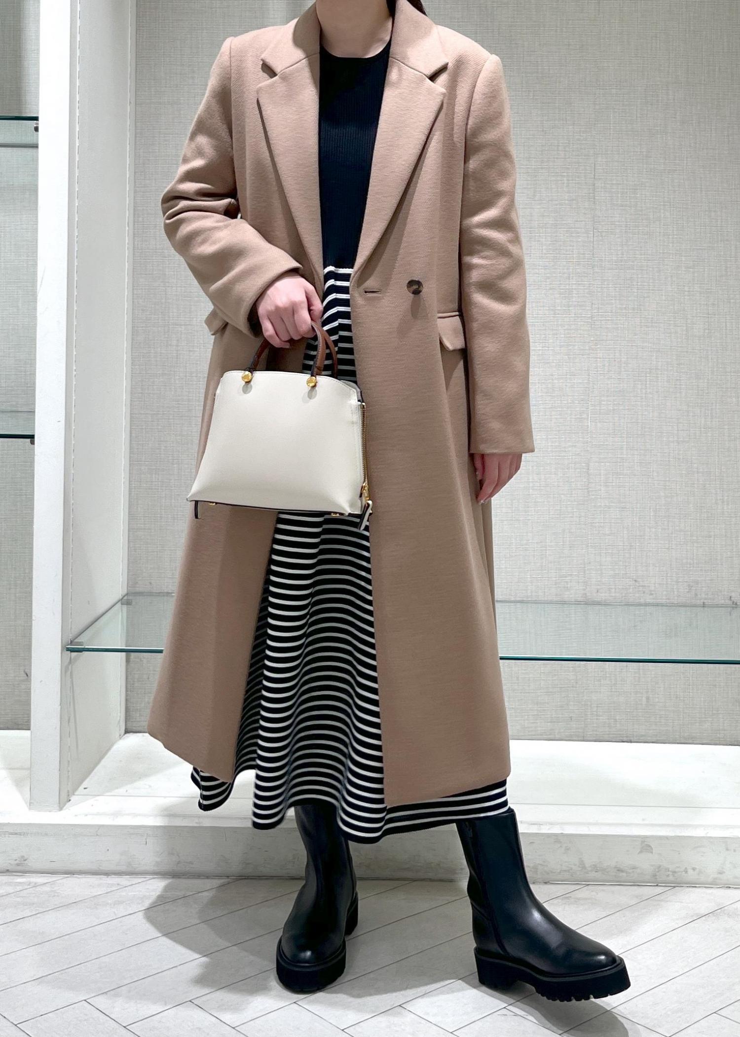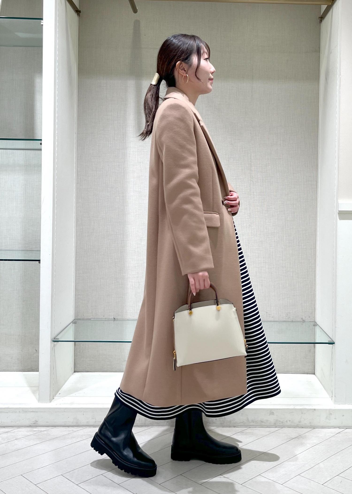 ウエスト位置高めできちんとスタイルアップも叶うコートです♪
