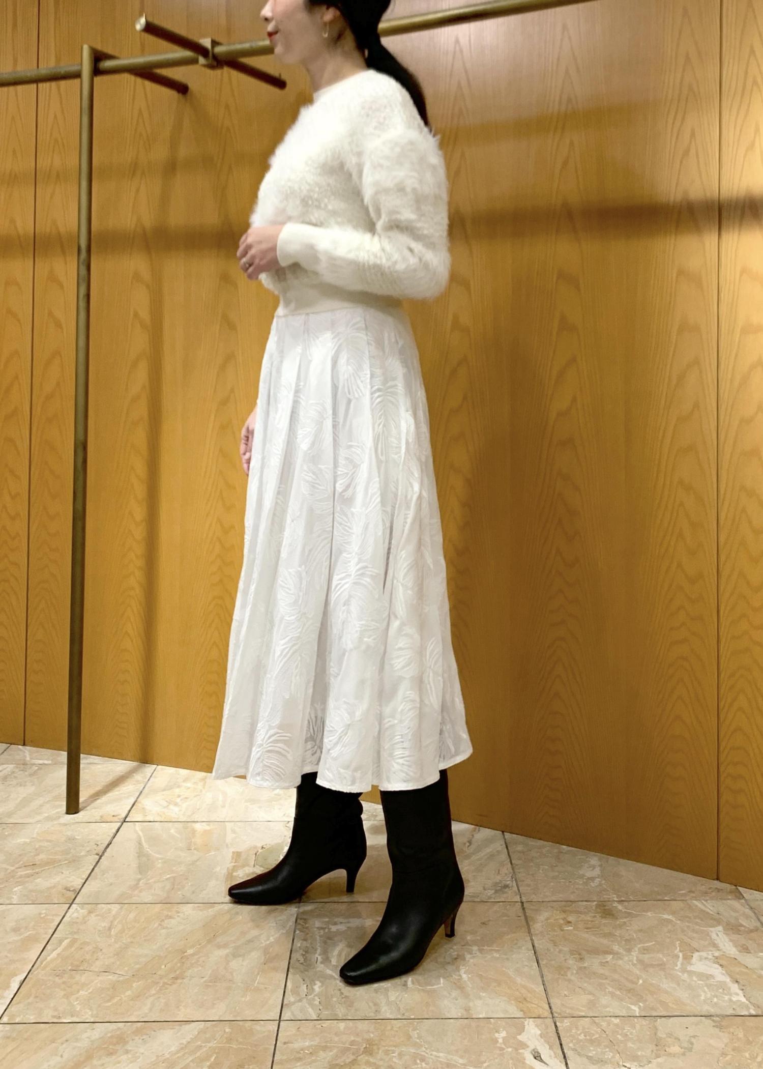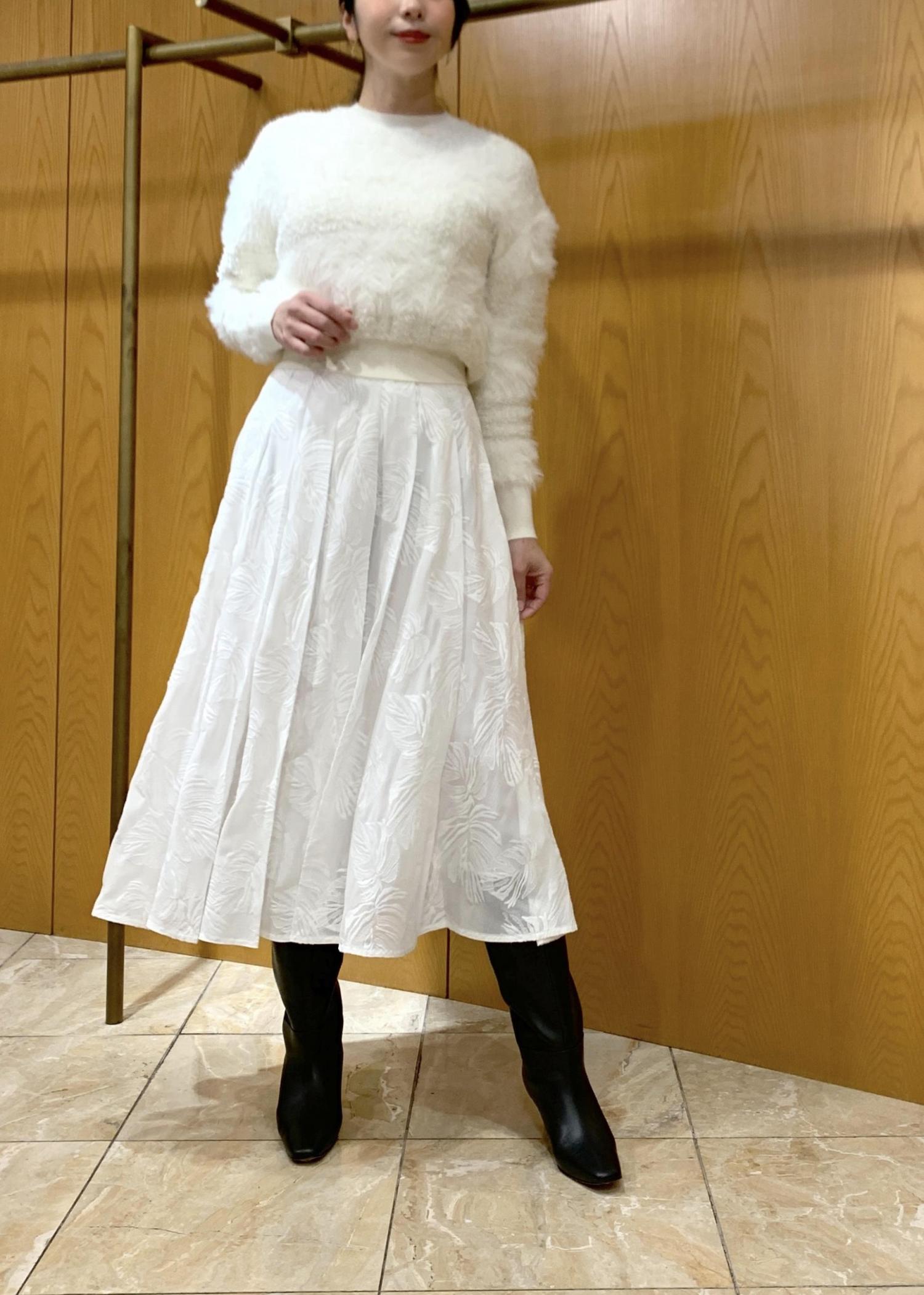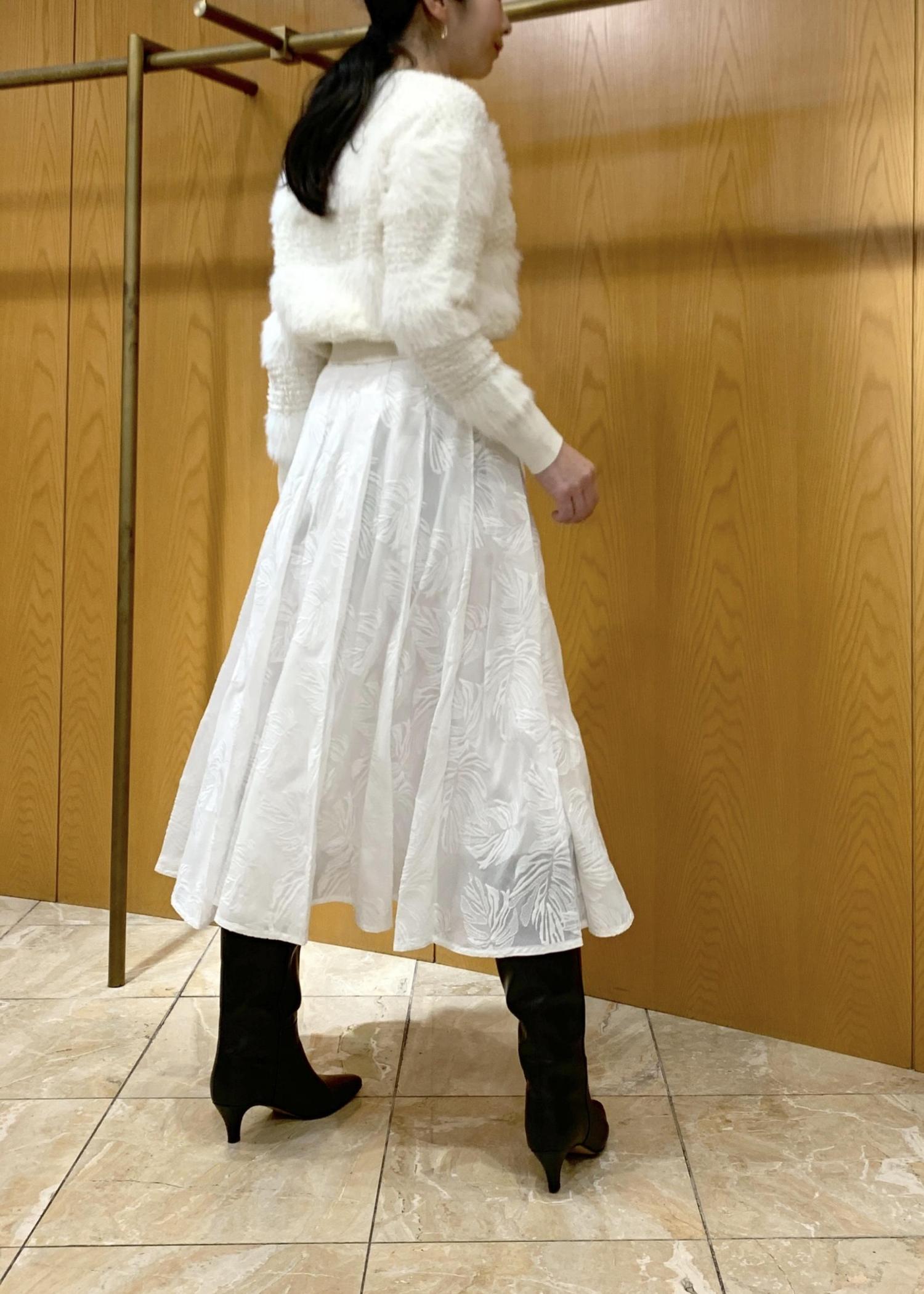 シアーエンブロイダリータックフレアスカート