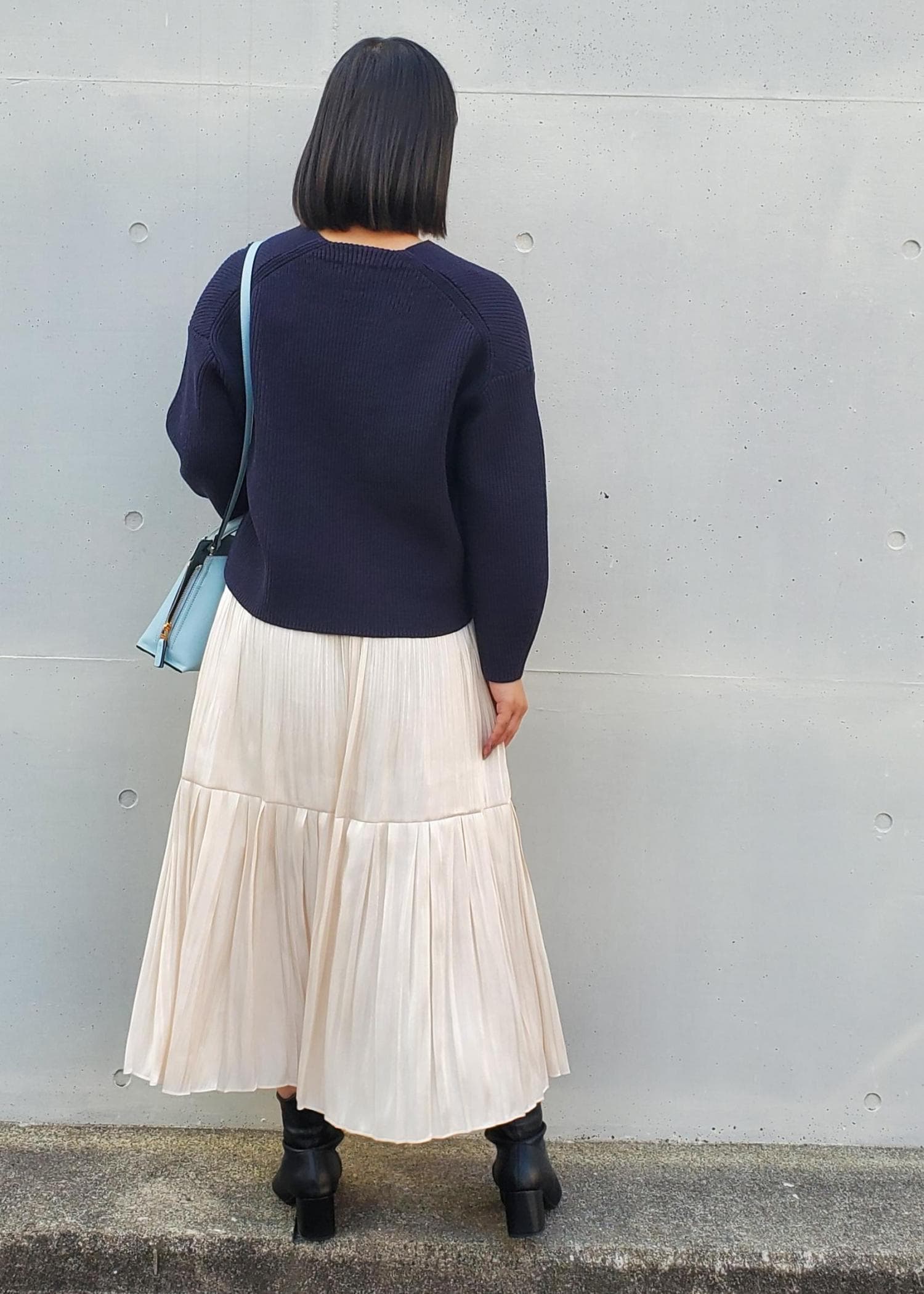 下にシャツやシアートップス、ワンピースなどをレイヤードできるので着回し抜群です。