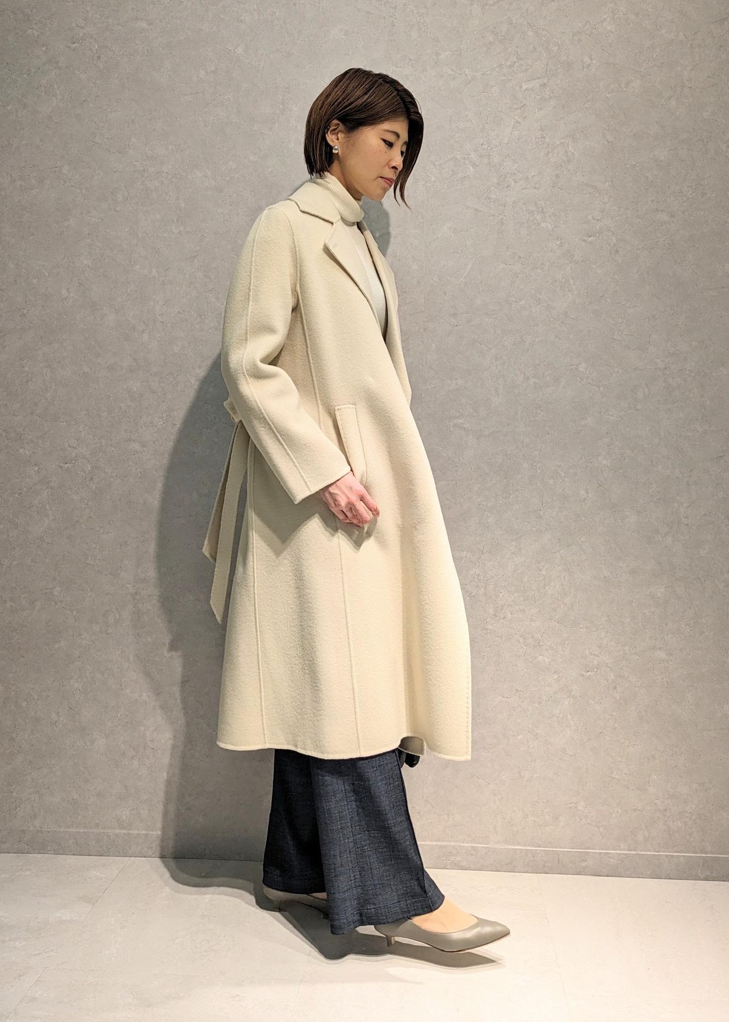 アウトレットROPÉ【高評価】【SUPER100's/140's】シャルムリバー2WAYロングコートキナリ / 38¥51,920レビュー167cmで38サイズ着用。