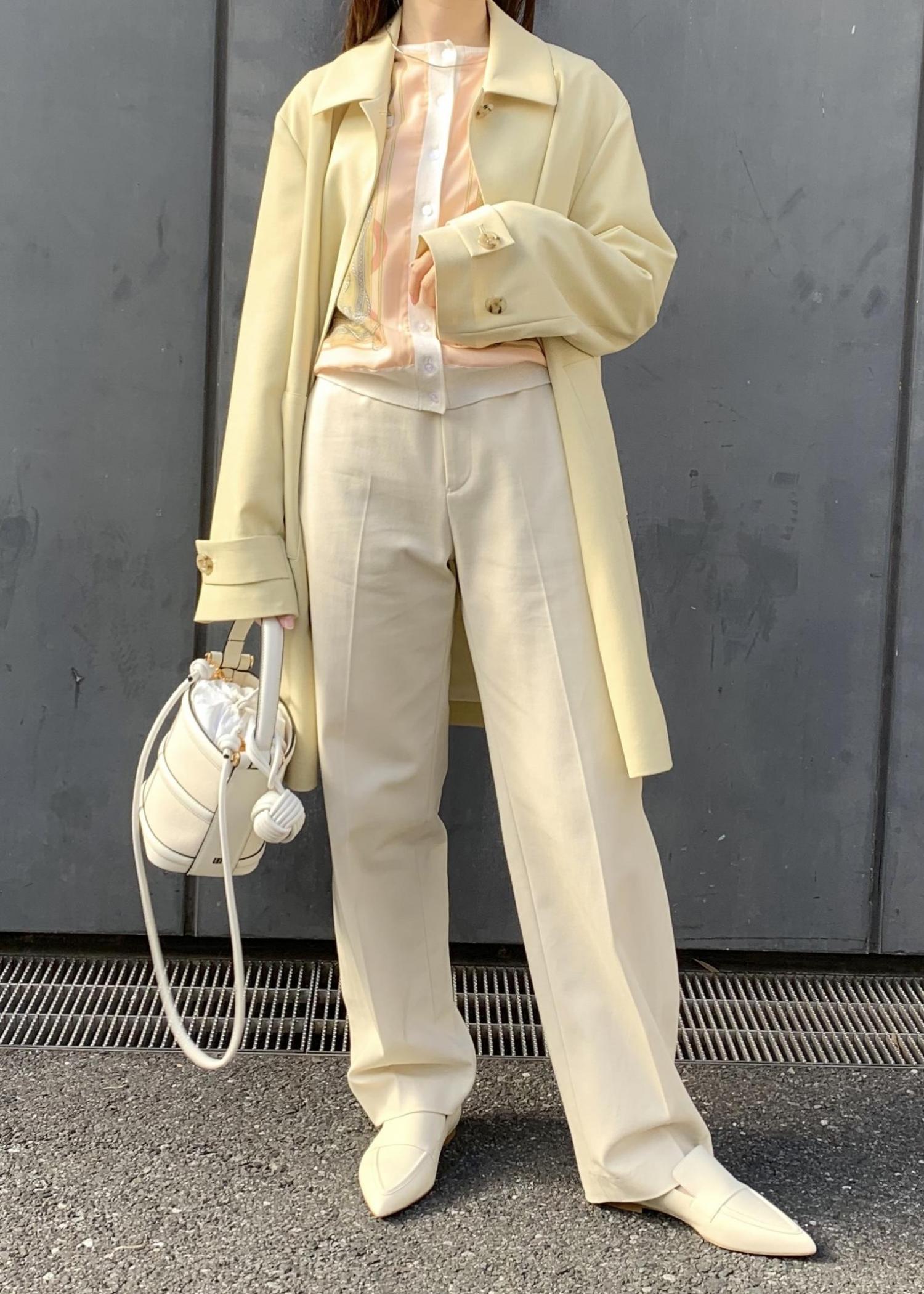 こちらのコートも、中に着るものが明るくても暗くても合わせやすいクリームとベージュの2色展開です。