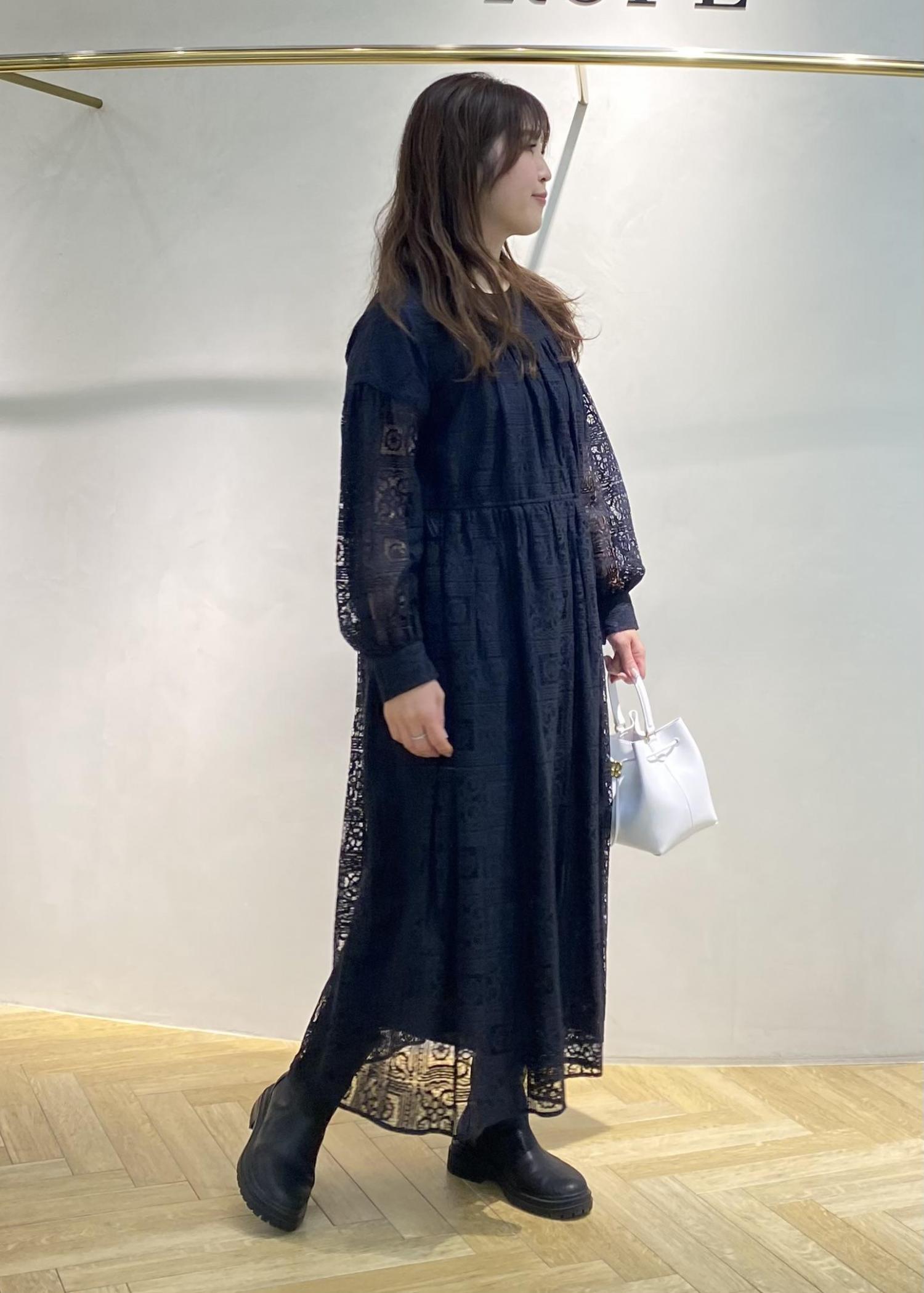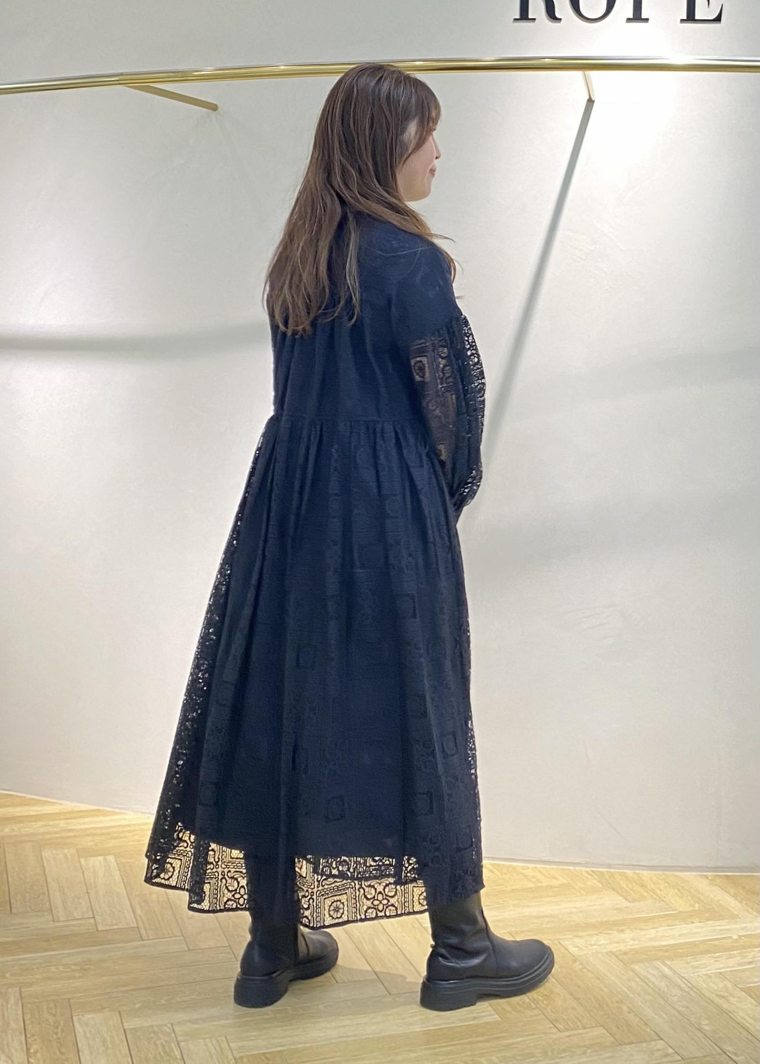 アウトレットROPÉレースワンピースネイビー / F¥19,800レビューストンとしたラインですがウエスト部分にサイドリボンのシャーリングが入りまた広がり感もそこまでないので着用してみるとスッキリした印象かなと思いました。