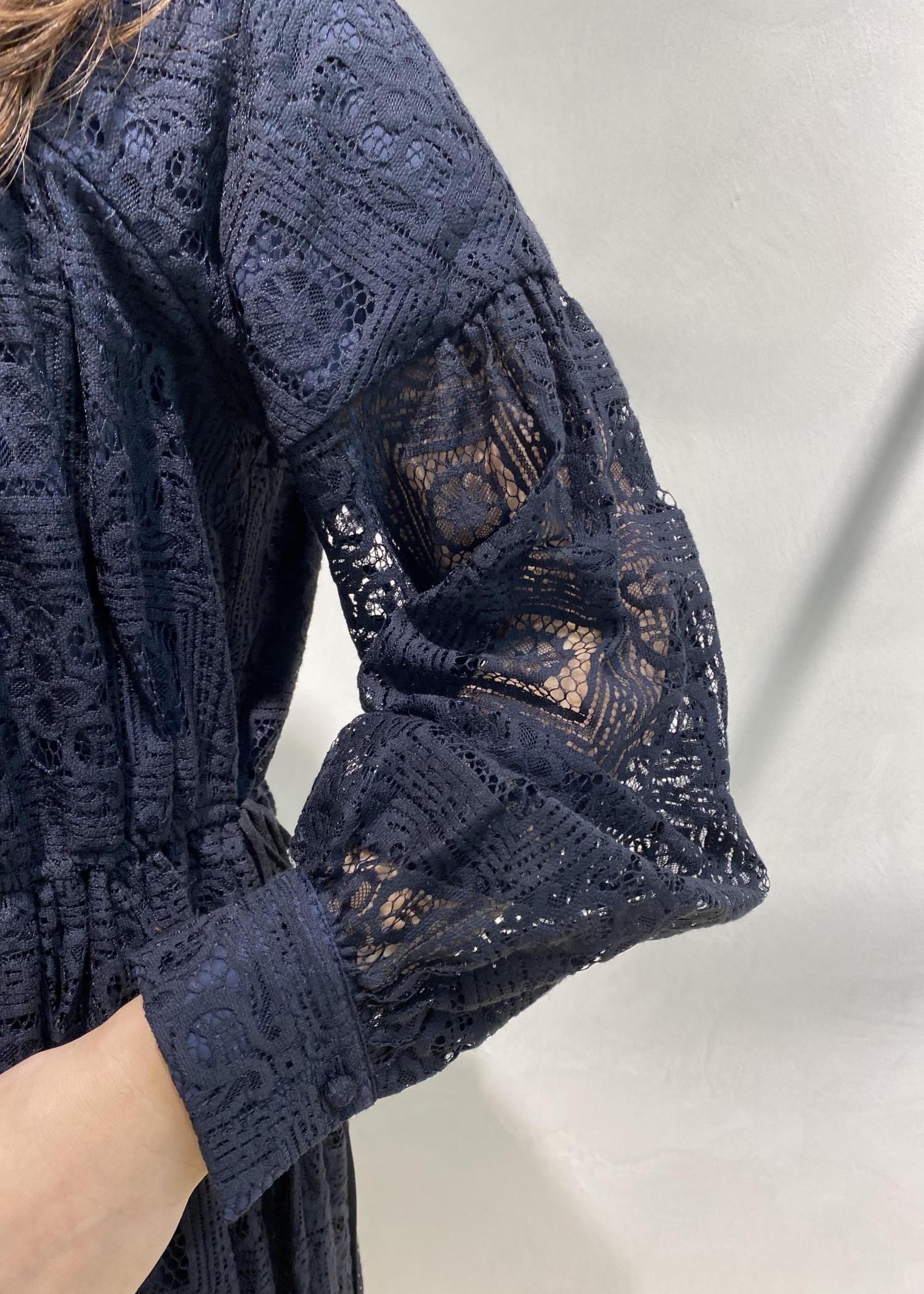 レースが可愛いですがネイビーなら落ち着いた大人な雰囲気に。