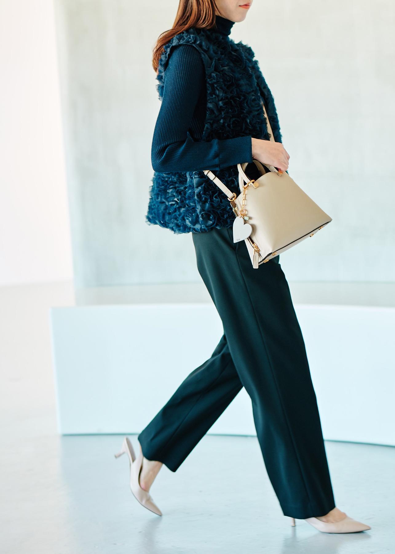 アウトレットROPÉ【限定店舗・J'aDoRe限定】エレガンスオーガンジーフリルジレネイビー / F¥30,250