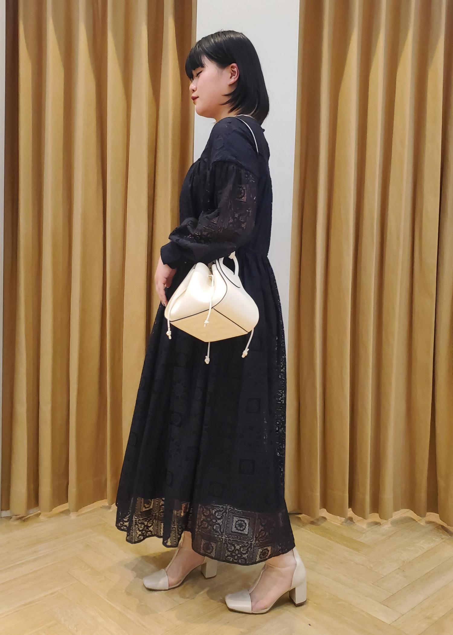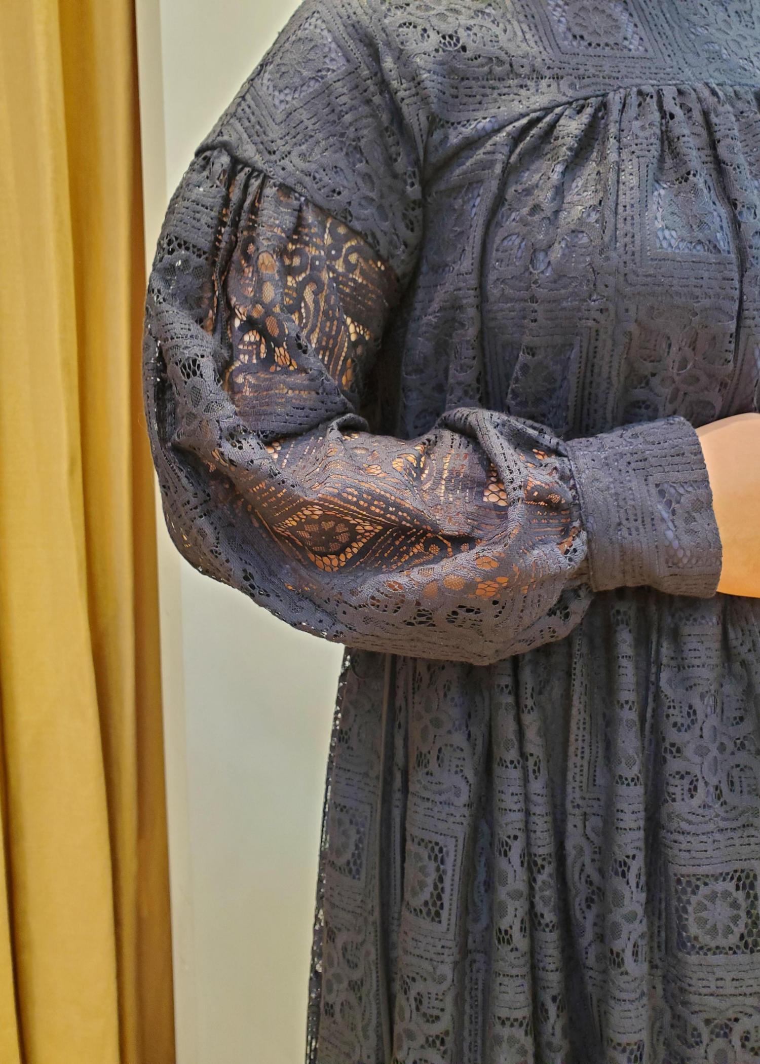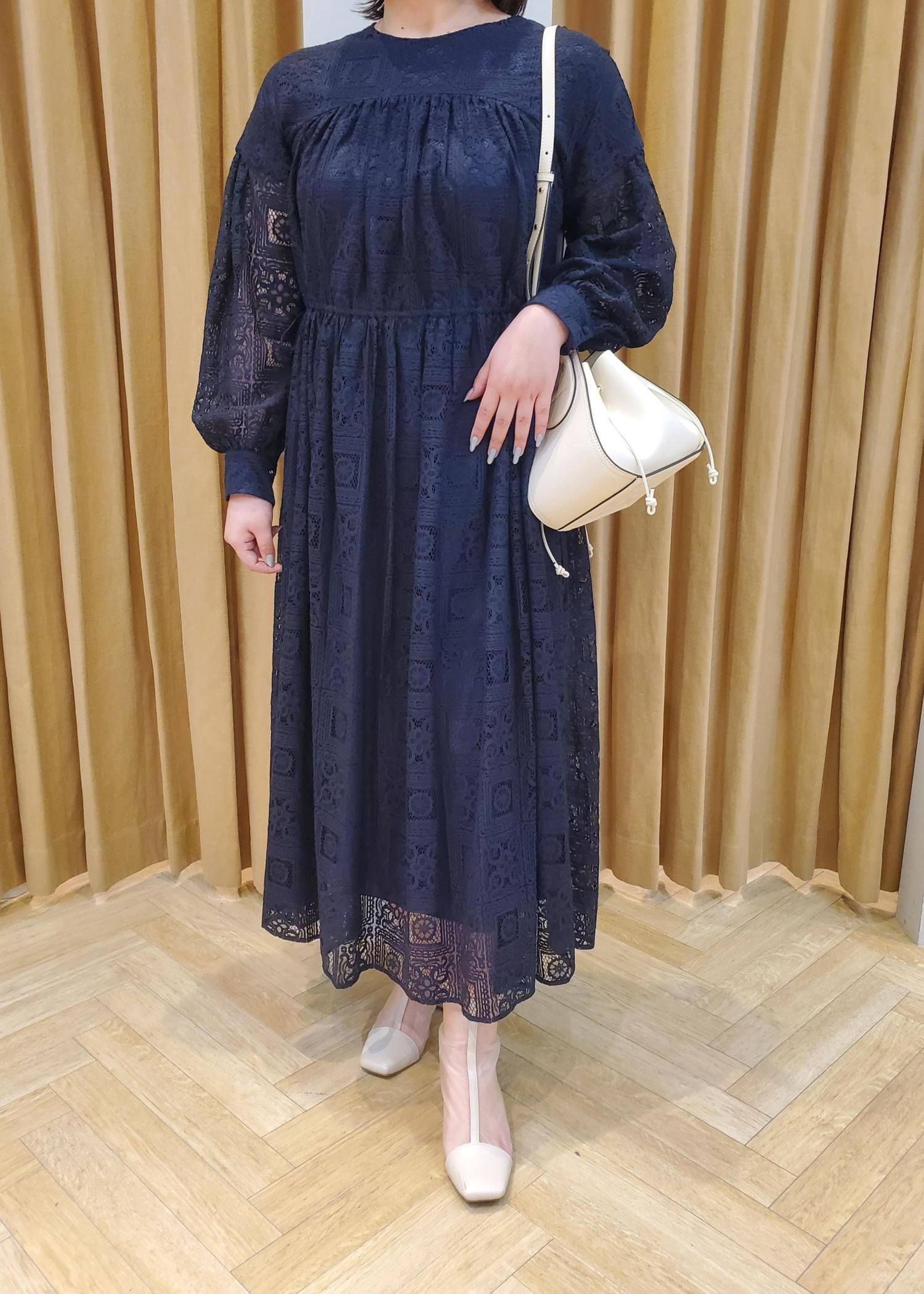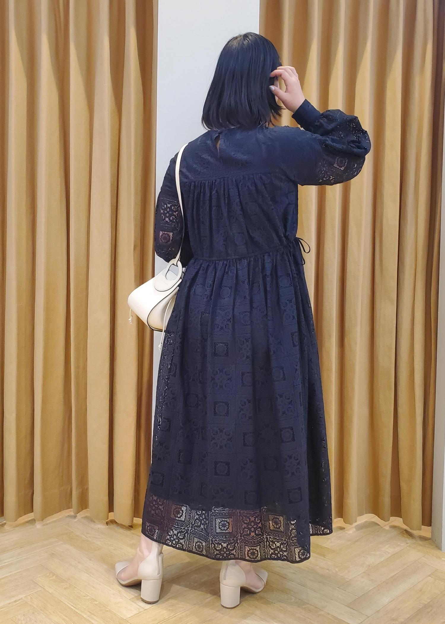 アウトレットROPÉレースワンピースネイビー / F¥19,800レビュー身ごろに裏地がついており袖はレースになってます。