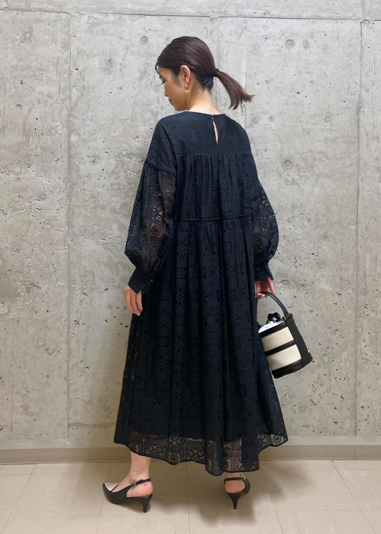 壁紙のようなスクエアーモチーフが連なったレースが甘すぎず、