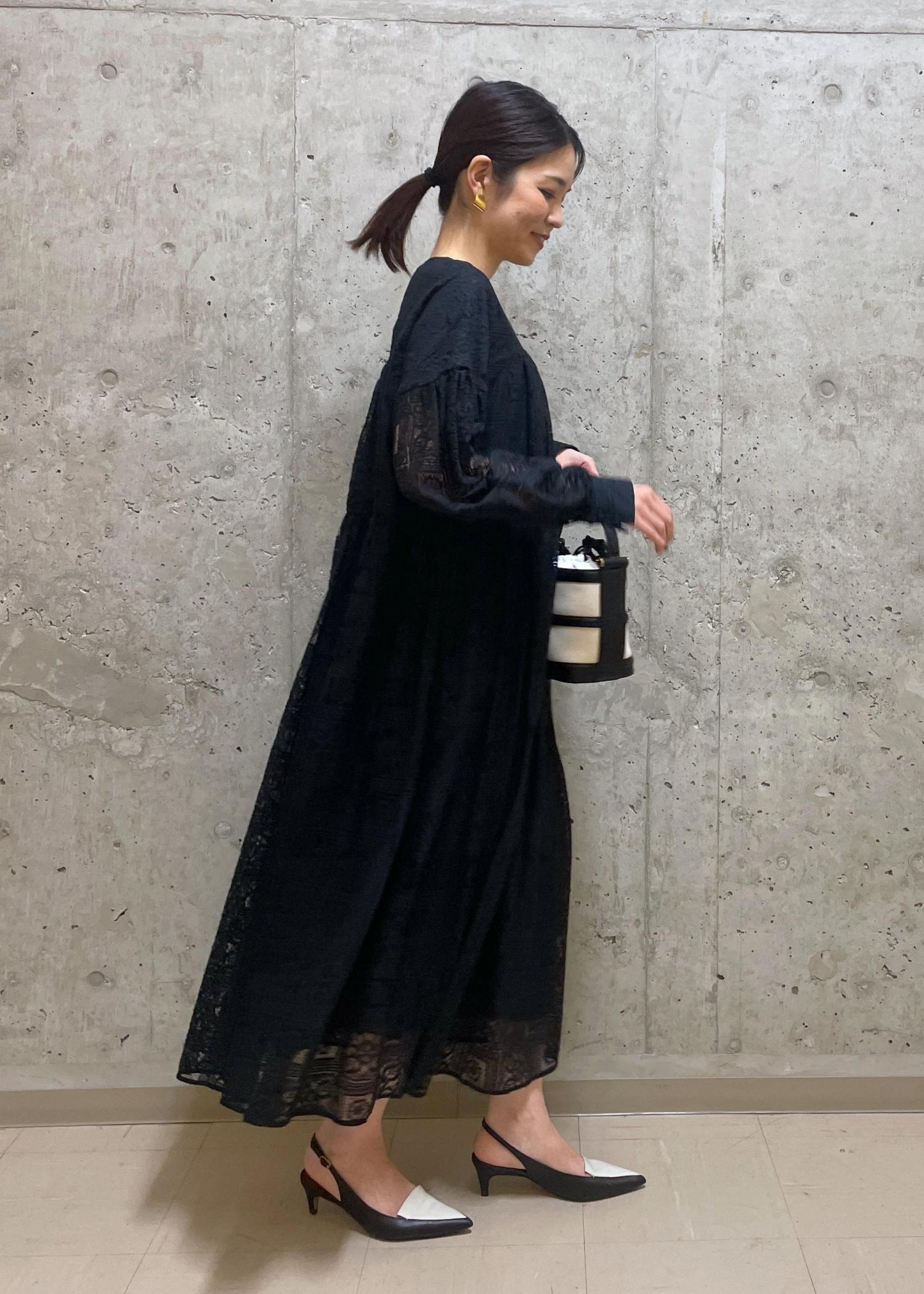 着丈は足首がしっかり見える長さで、袖丈は手の甲にかかる長さです。