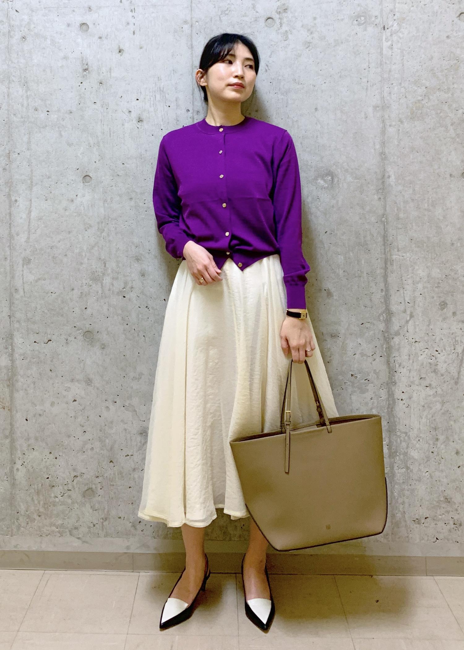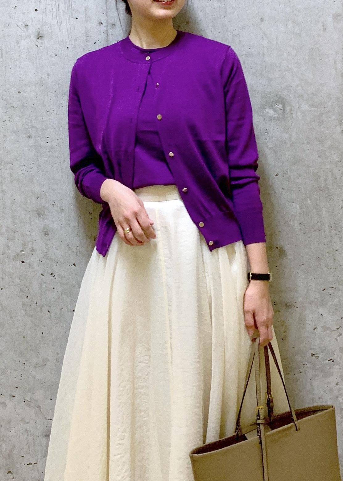 アウトレットROPÉ【洗える/涼感】シルクコットン クルーネック カーディガン【アンサンブル対応】パープル / F¥12,650レビューコンパクトなサイズ感ですが、少しゆとりがあり身体のラインを拾いません。リブ部分で止まるようになっており、裾は短めで腰位置で調節出来ます。
