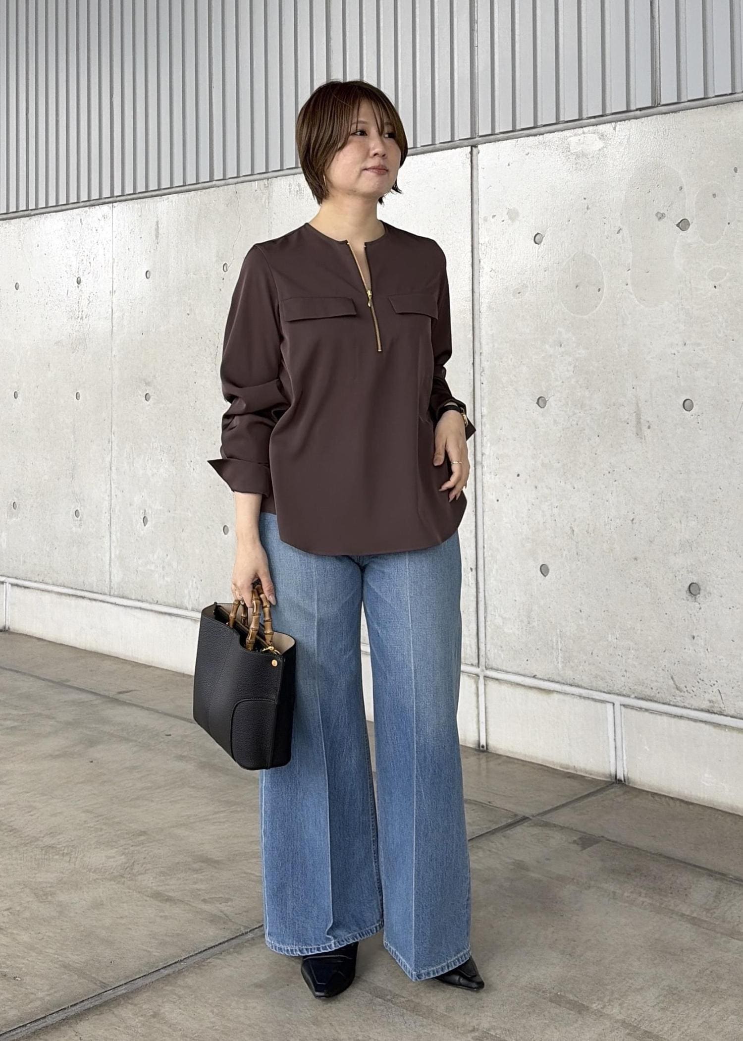 38サイズ着用。定番紺ブレよりも少し袖筒が細身で女性らしいシルエットです◎