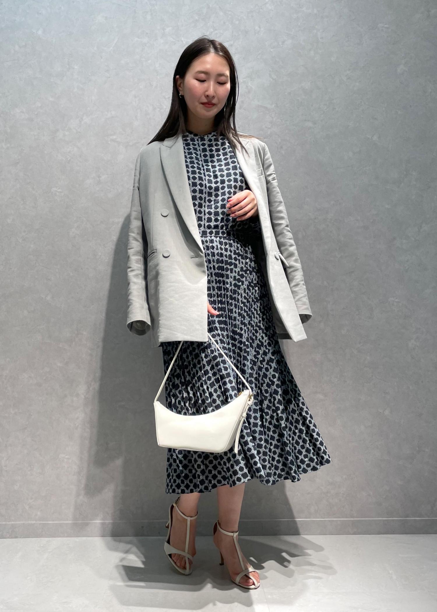 総柄ワンピースにジャケットを合わせてきれいめカジュアルなお出かけスタイルに♪